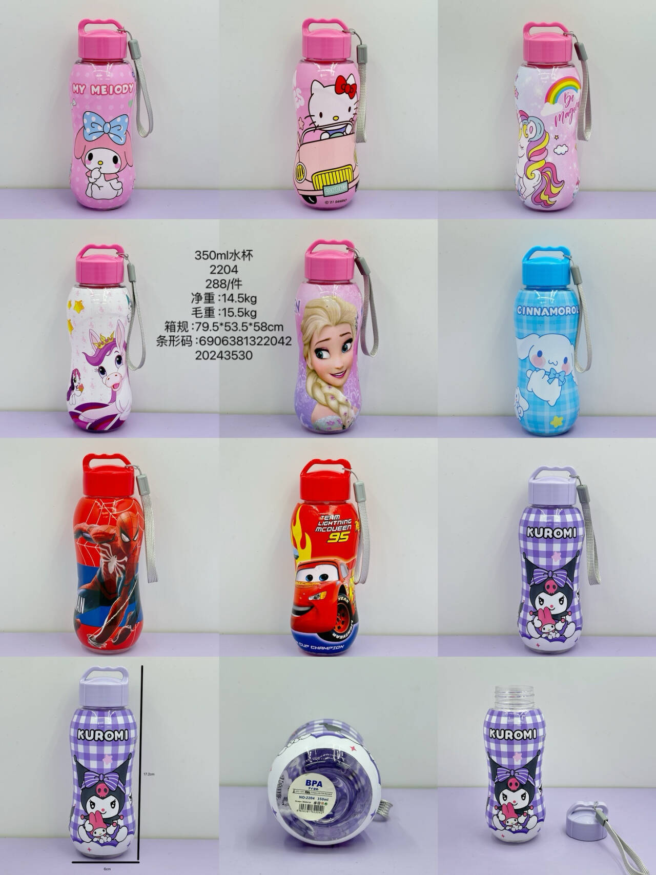 Vaso portátil de dibujos animados lindo al por mayor para estudiantes de primaria, para beber directamente al aire libre, con cuerda, cantimplora deportiva, una generación de cabello
