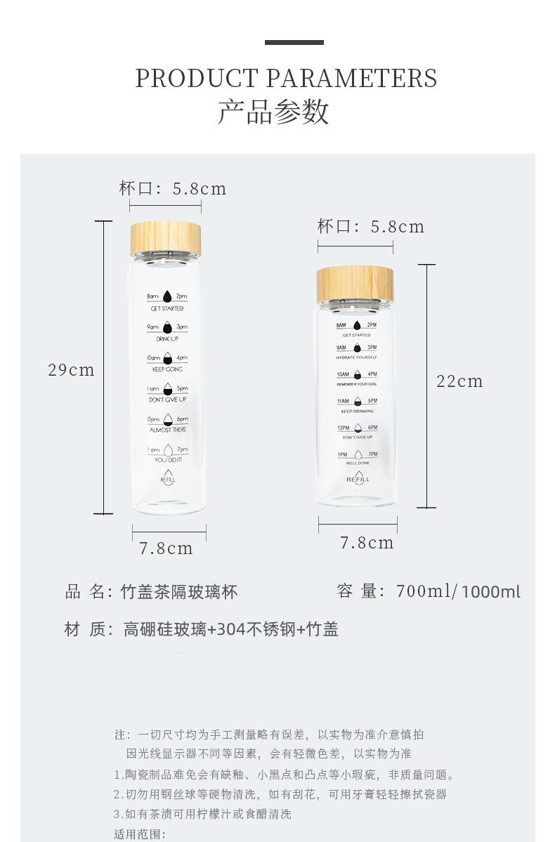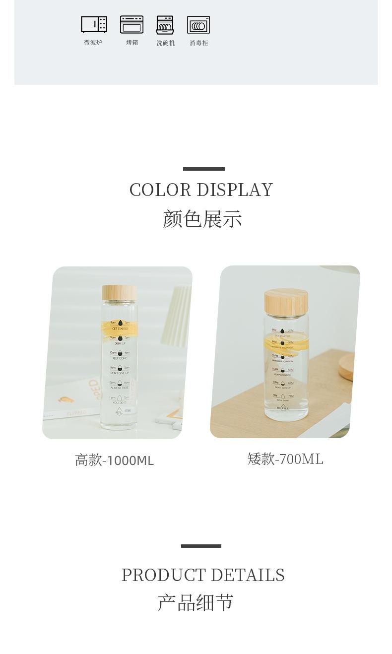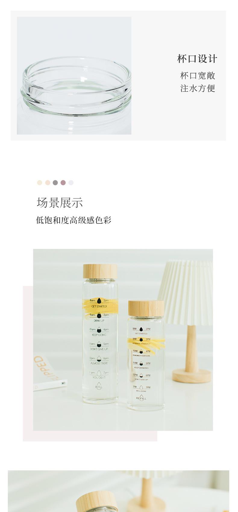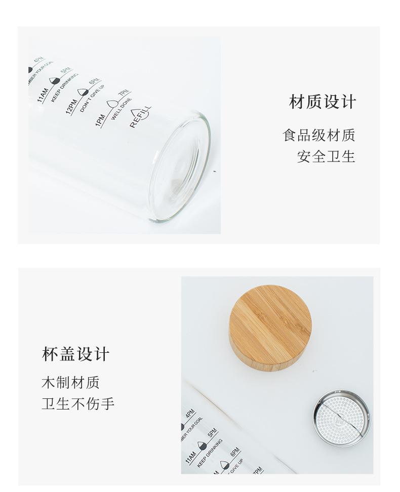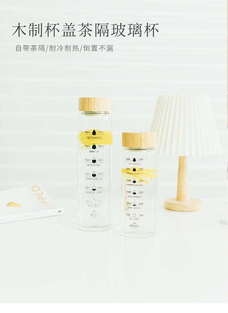 Nueva taza de agua de vidrio con escala de tiempo, taza portátil de gran capacidad para niños y niñas, taza de té portátil para el día de verano.