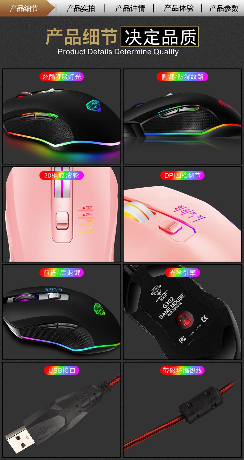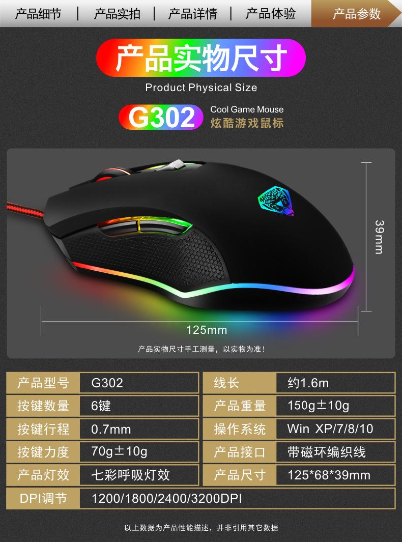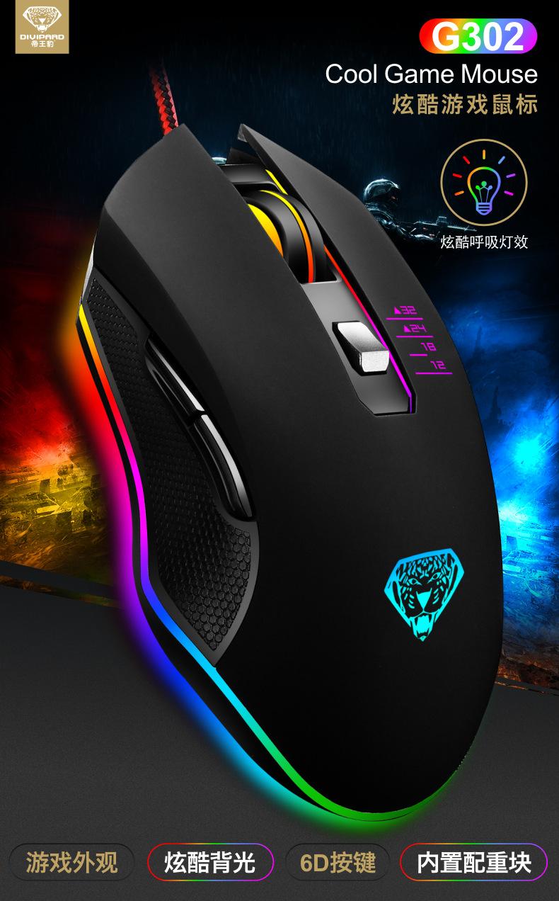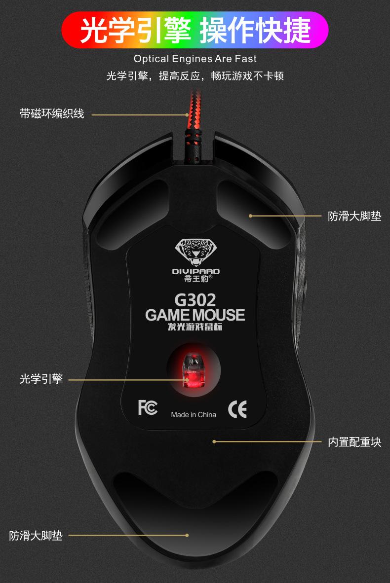 Mouse Gaming Alámbrico Luminoso Imperial Leopard G302 Ratón Competitivo Laptop Universal Transfronterizo Punto Venta al Mayoreo