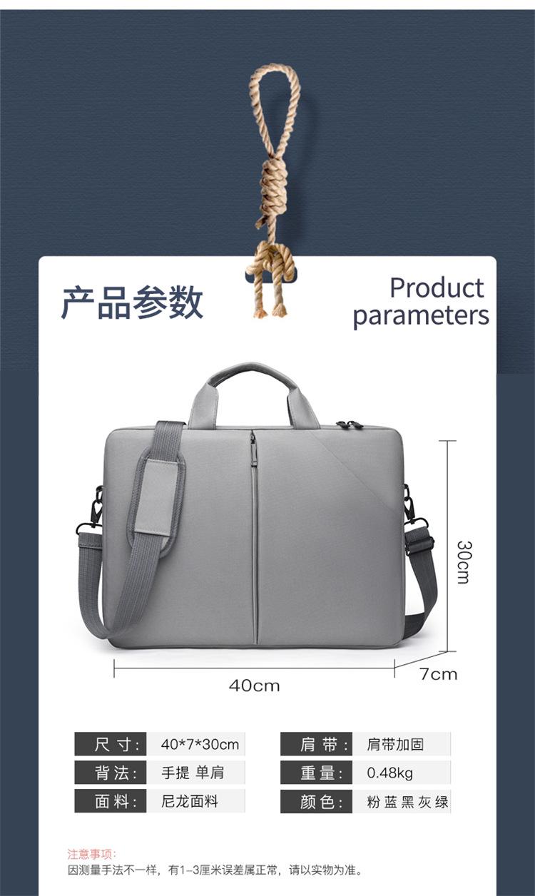 Nueva bolsa para portátil de un solo hombro, para uso diario, ligera, de gran capacidad, impermeable