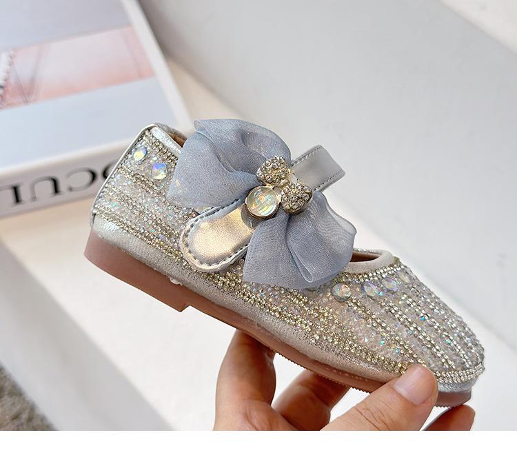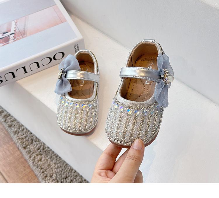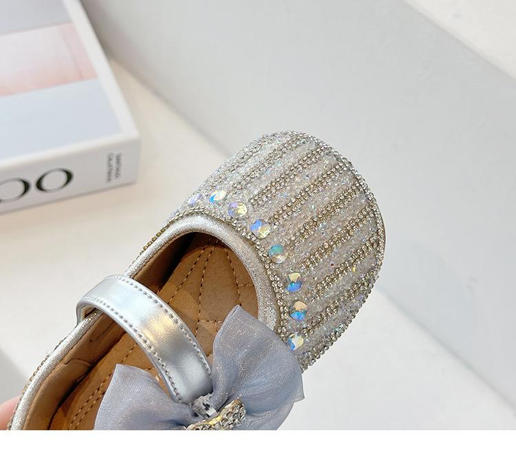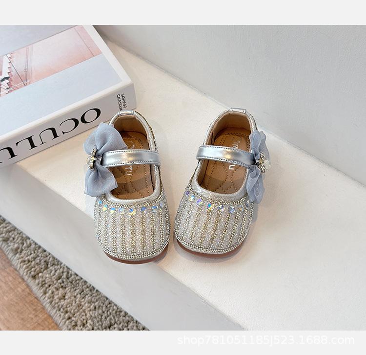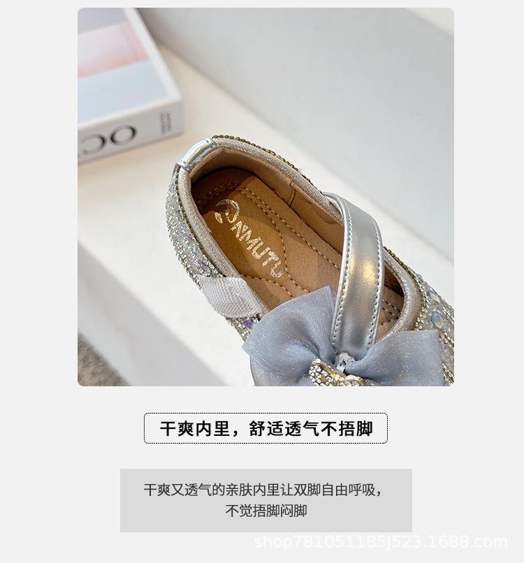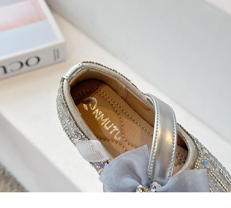 Zapatos de cuero pequeños para niñas, novedad de verano 2024, zapatos de princesa de moda con cristales para niñas, elegantes zapatos plateados.