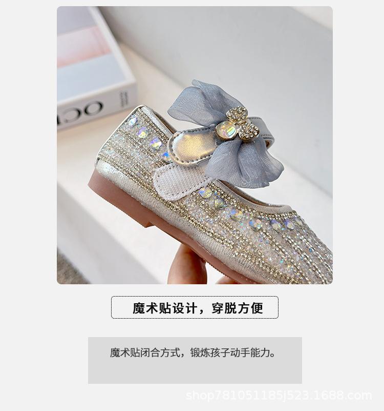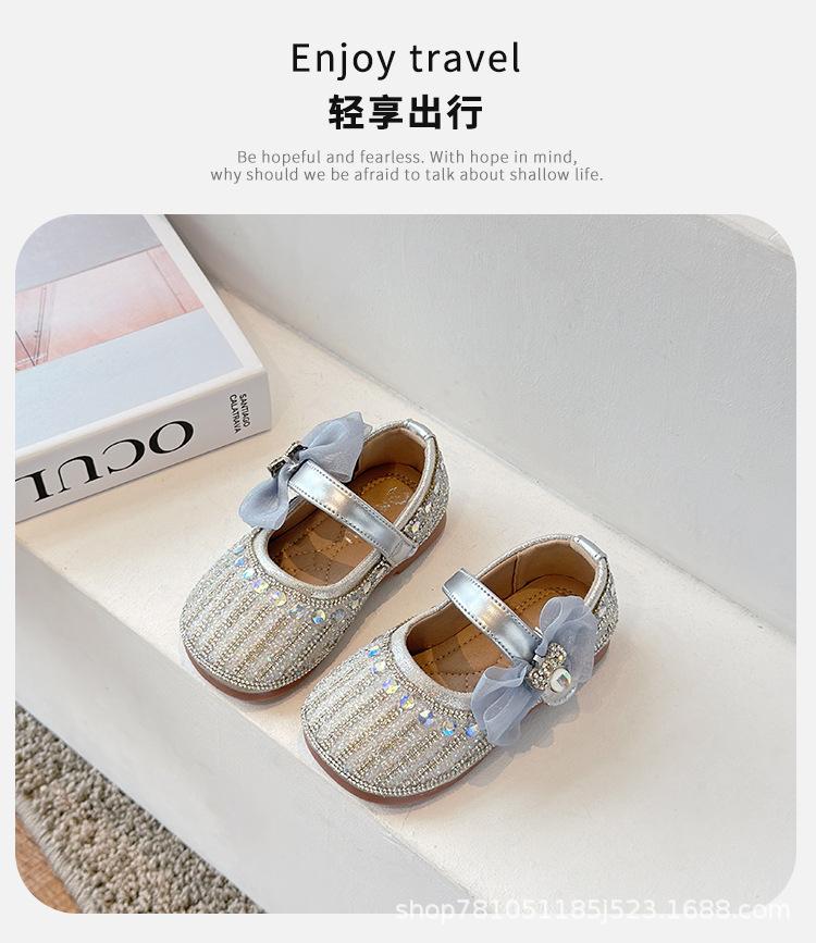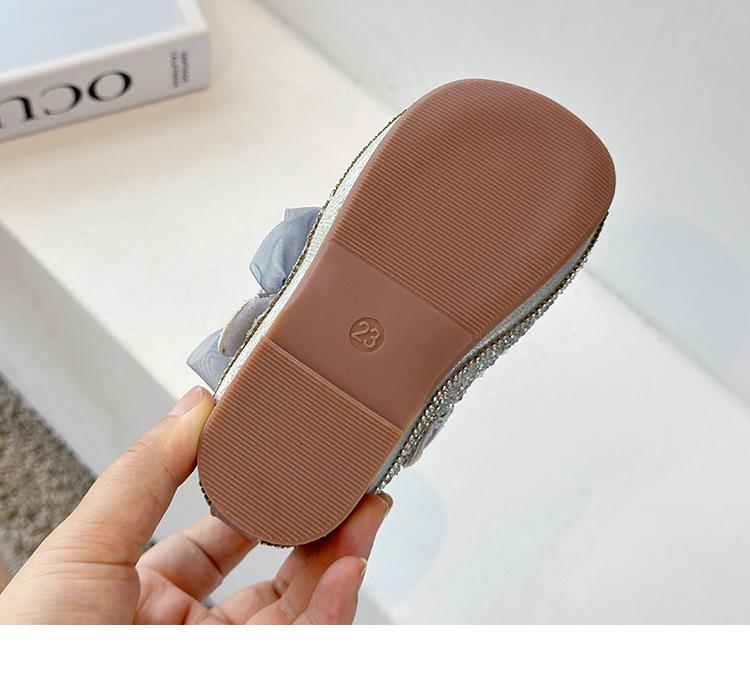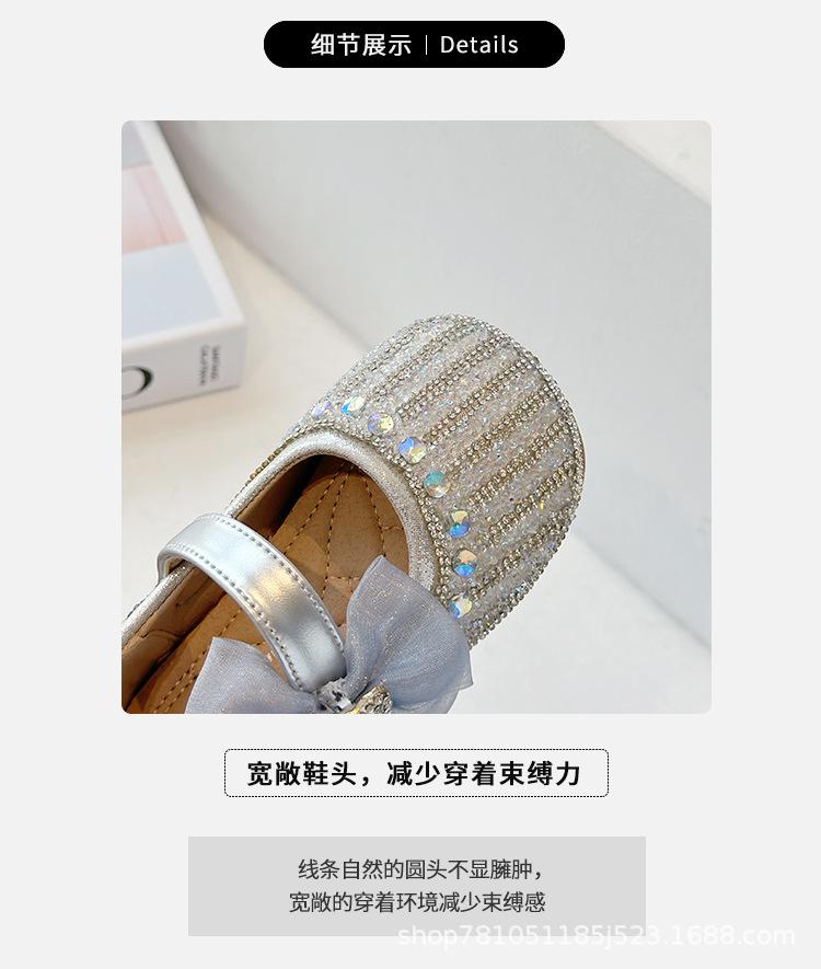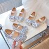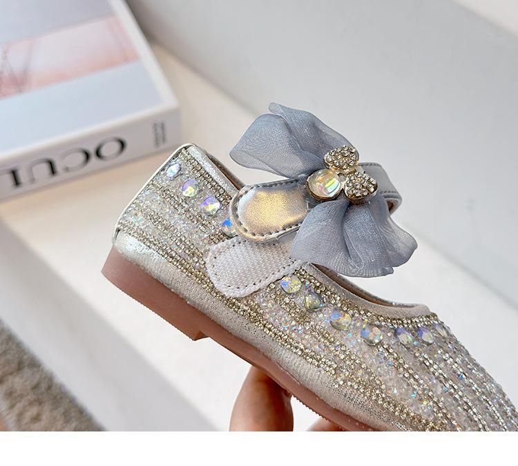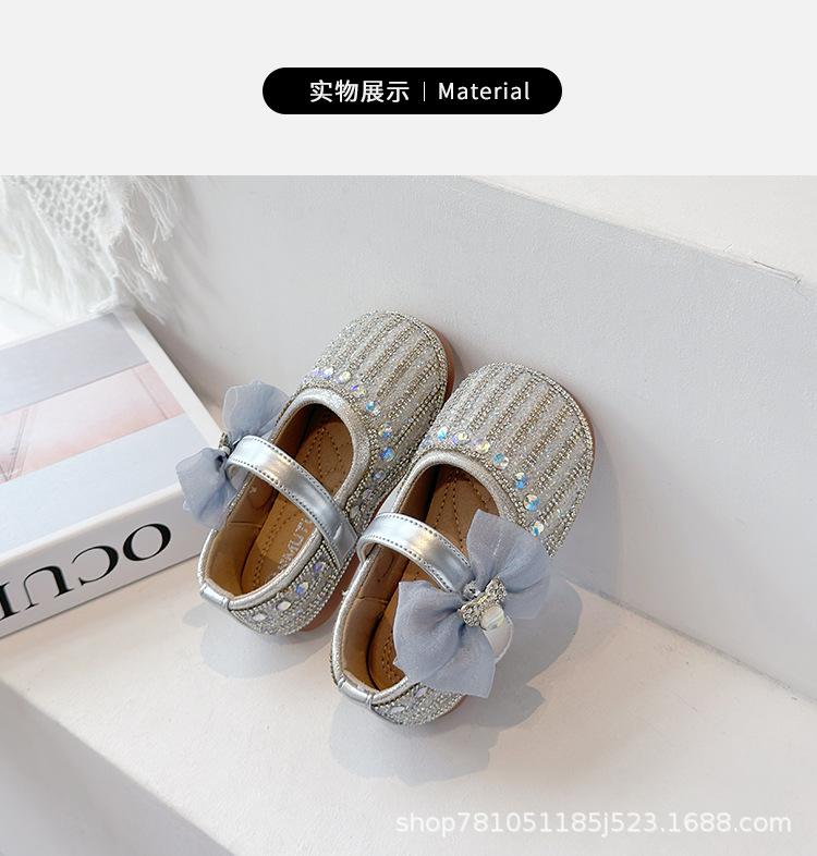Zapatos de cuero pequeños para niñas, novedad de verano 2024, zapatos de princesa de moda con cristales para niñas, elegantes zapatos plateados.