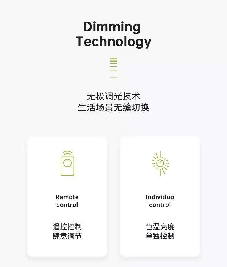 Tricolor dimming, Stepless dimming + Tmall Genie, Xiao Ai classmate