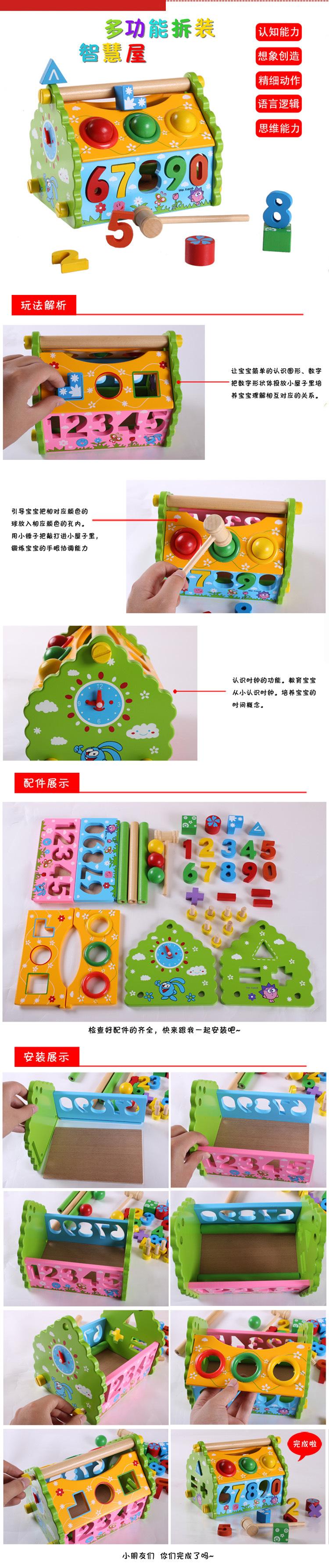 Suministro directo de casa de sabiduría de desmontaje multifuncional de madera para niños, juguetes educativos de combinación cognitiva de colores y formas, venta al por mayor