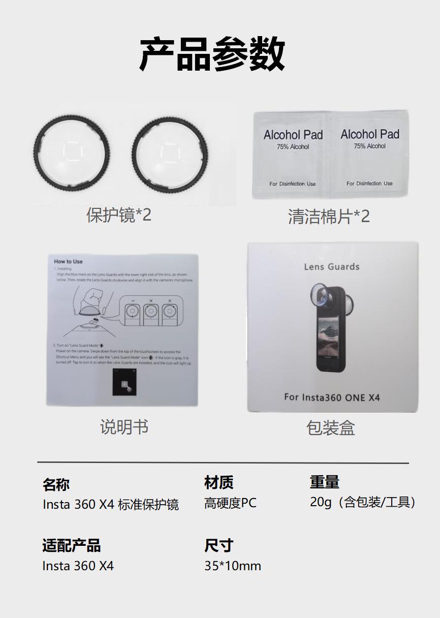Insta360x3 protective mirror, Insta360x4 plastic protective mirror