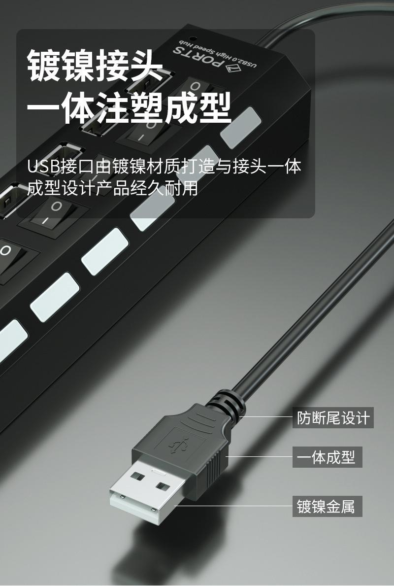 Concentrador divisor USB 2.0 de siete puertos para ordenador con interruptor independiente, extensor de expansión USB dividido