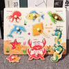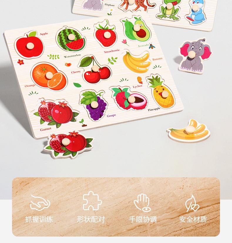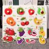 Tablero de madera con cierre para educación infantil temprana, alfanumérico, con forma de animal, verdura y fruta, panel de juego cognitivo.