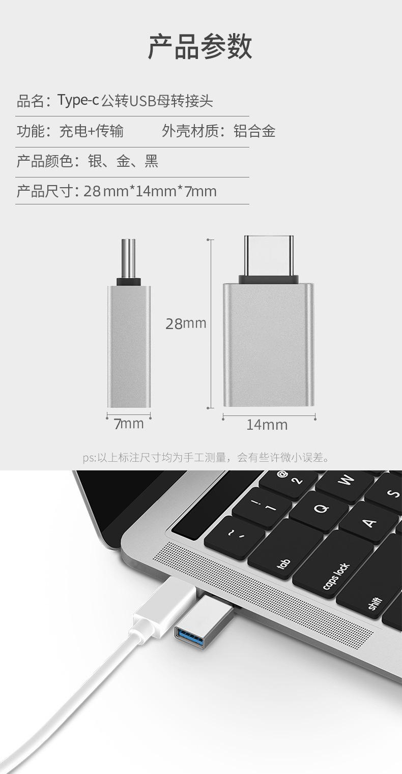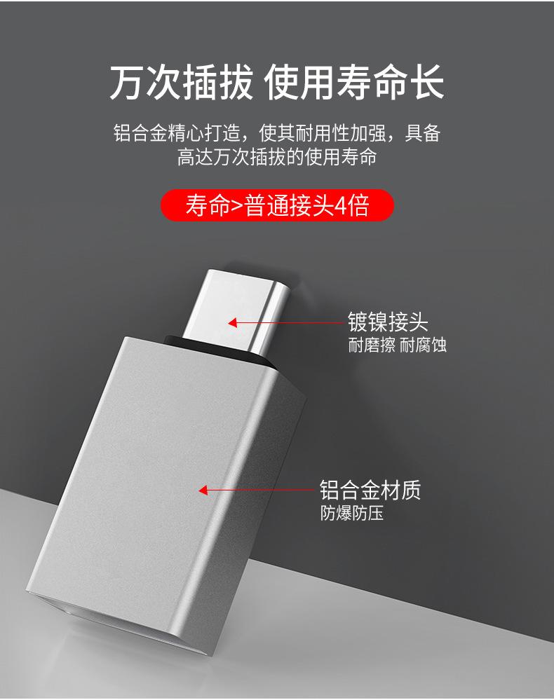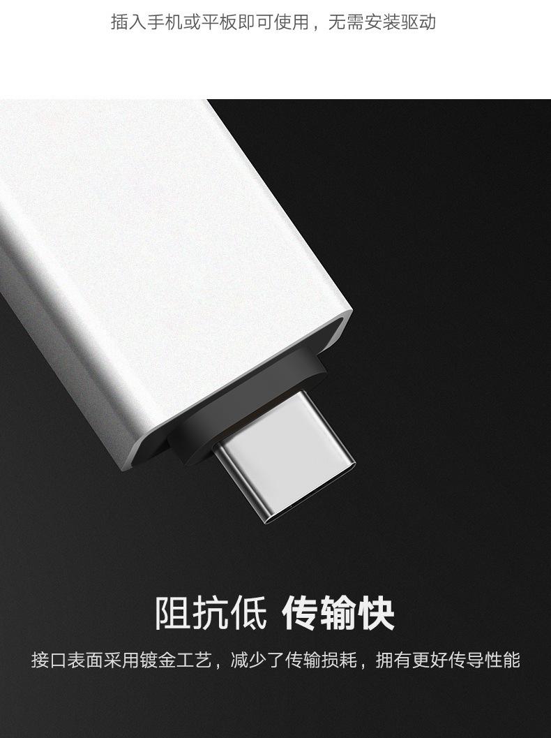 Adaptador OTG tipo C a USB 3.0 para teléfono móvil, compatible con lector de tarjetas U Disk, convertidor de aleación de aluminio.
