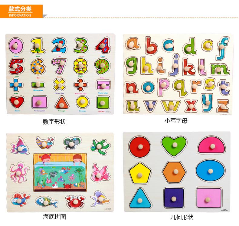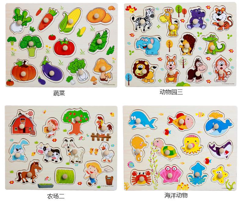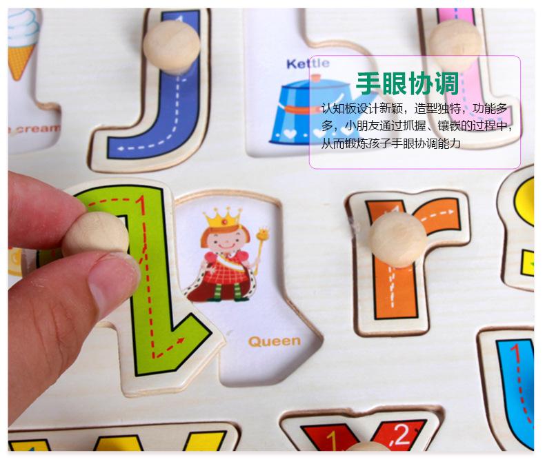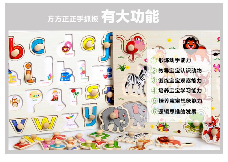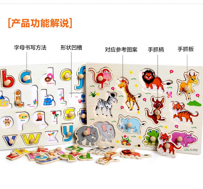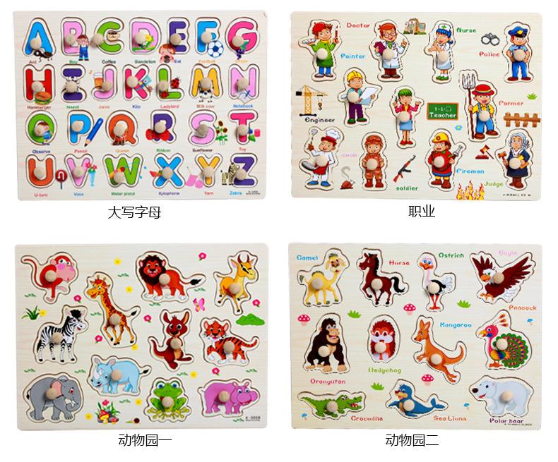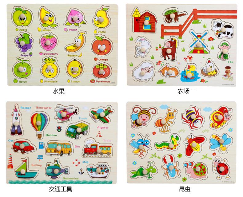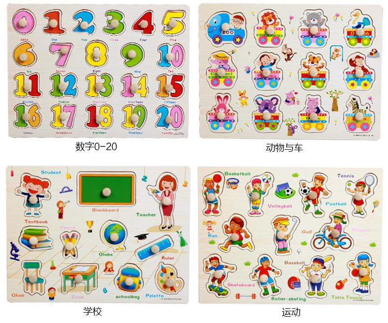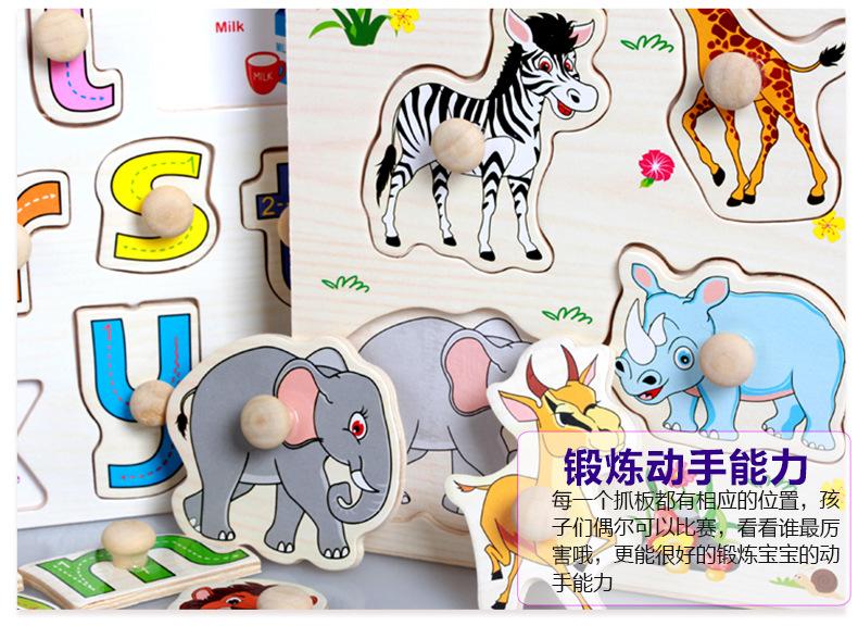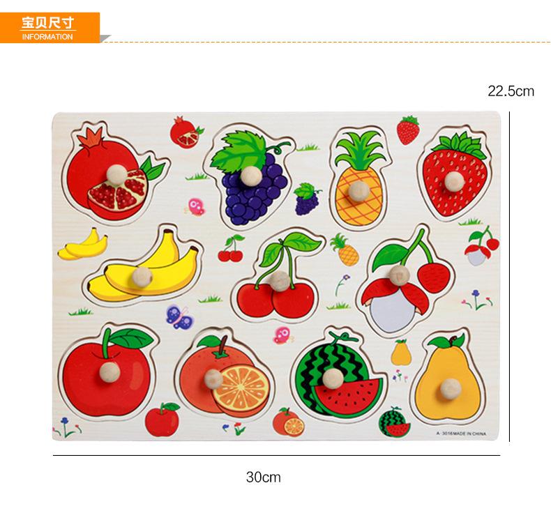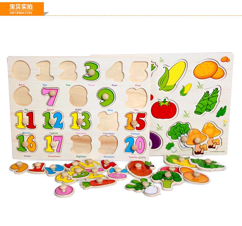 Tablero grande de madera con clavos para agarrar con la mano, rompecabezas para combinar, educación temprana, iluminación, alfabeto numérico, animales, frutas, juguete rompecabezas
