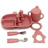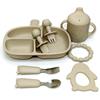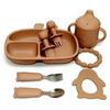 Light brown (rabbit 3 grid plate 3 silicone cup bracelet gum penguin gum short silicone fork spoon bear fork spoon)
