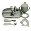 Olive green (rabbit 3 grid plate 3 silicone cup bracelet gum penguin gum short silicone fork spoon bear fork spoon)