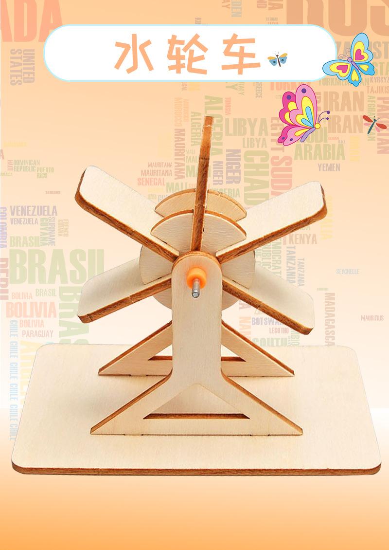 Tecnología de bricolaje, pequeña producción, rueda hidráulica, pequeño invento, experimento científico para niños de jardín de infantes, materiales didácticos, juguetes ensamblados