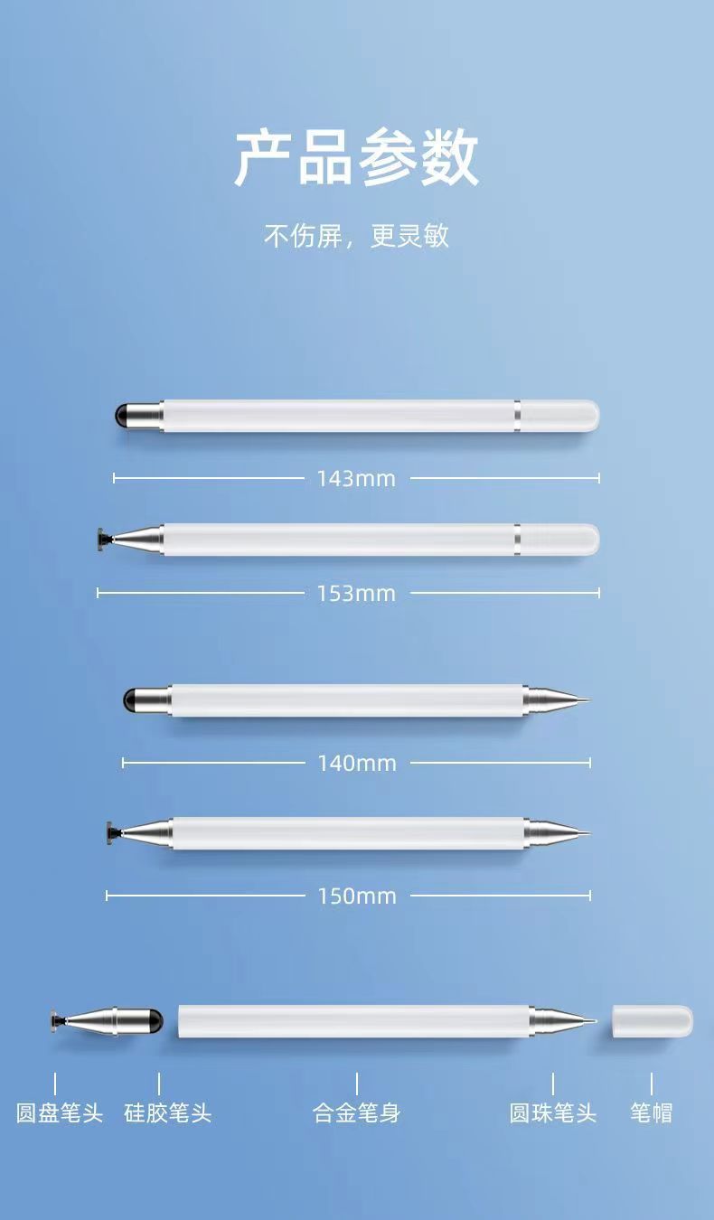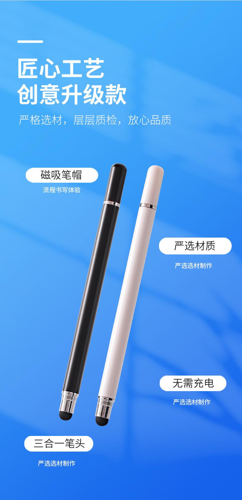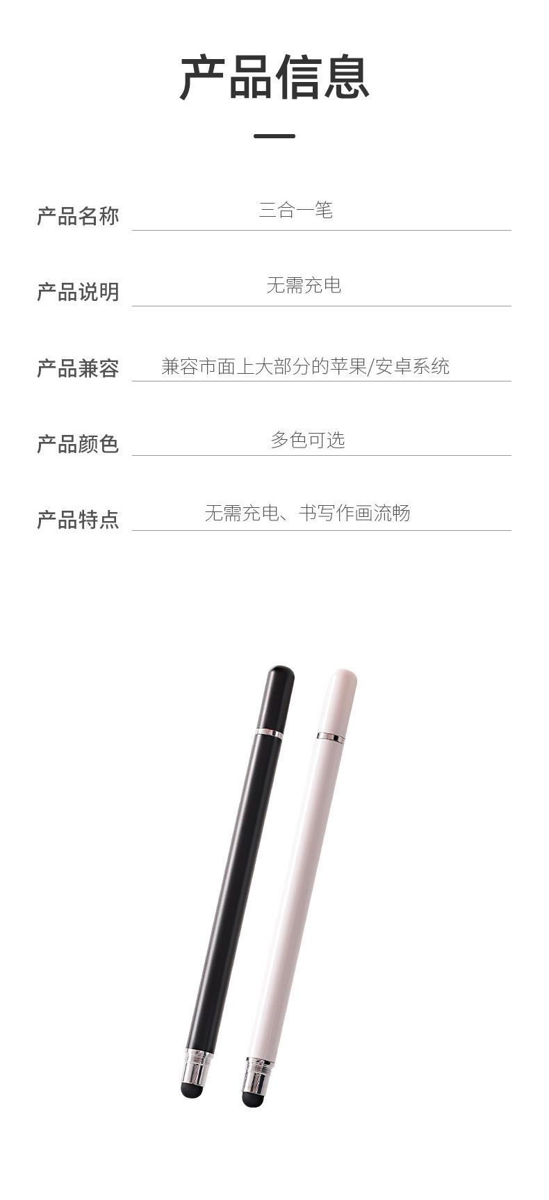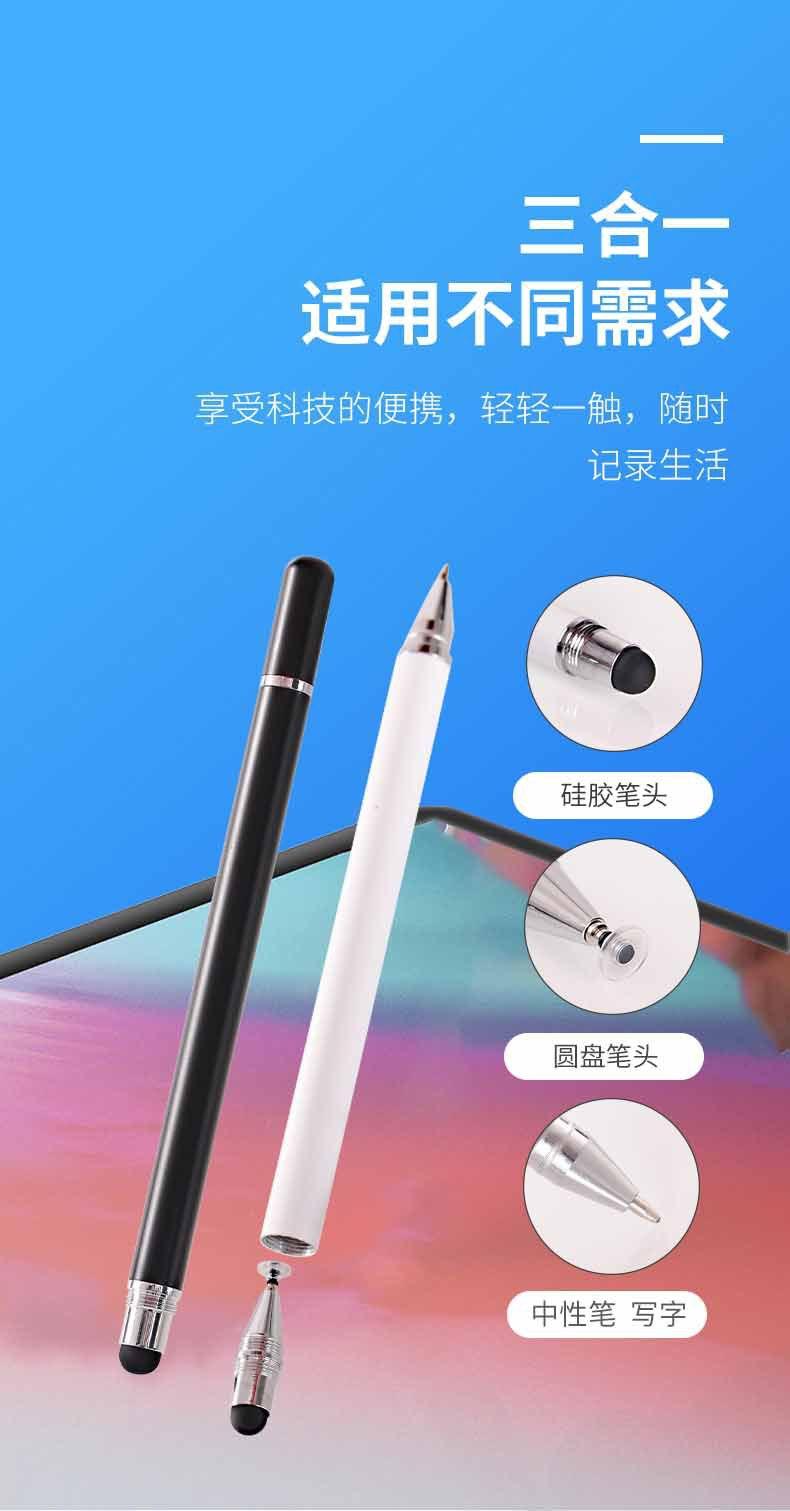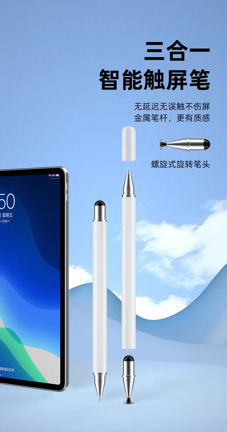 Nuevo lápiz óptico de metal tres en uno, lápiz capacitivo para videoclips, pintura de oficina, lápiz óptico para teléfono móvil y tableta.