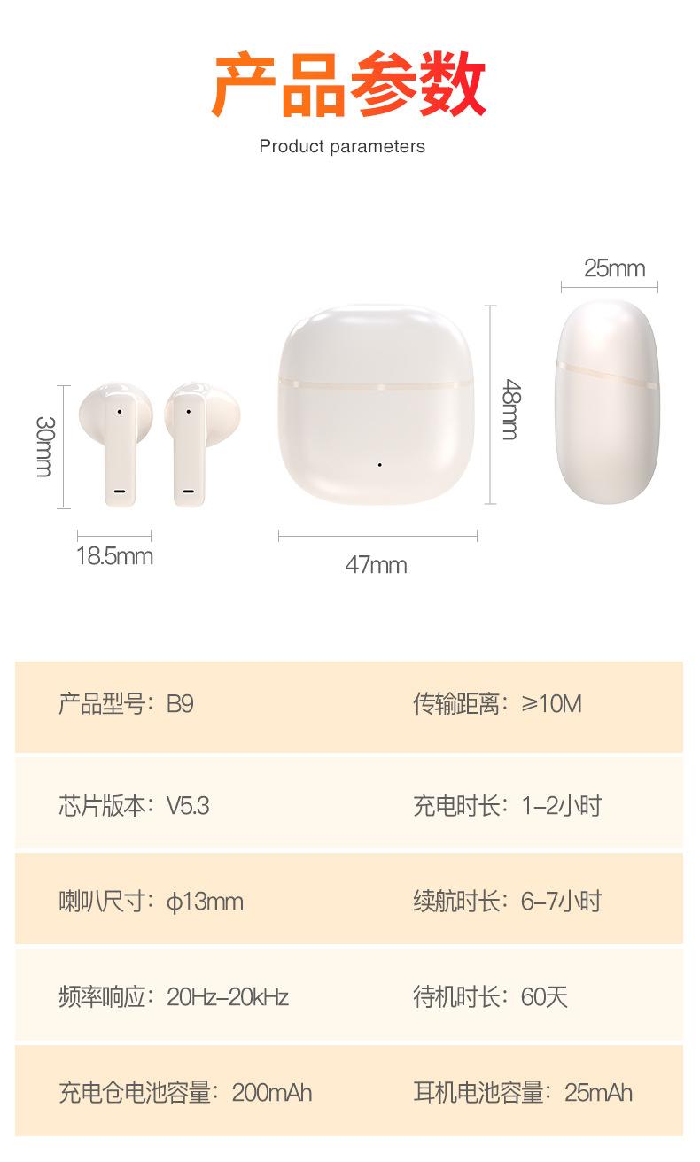 Explosiones transfronterizas B9 audífono inalámbrico bluetooth 5.3 modelo privado TWS audífono inalámbrico intraauricular para deportes fábrica