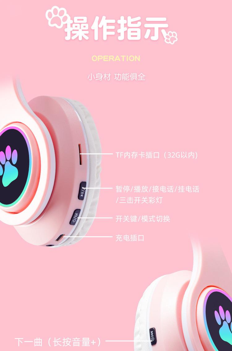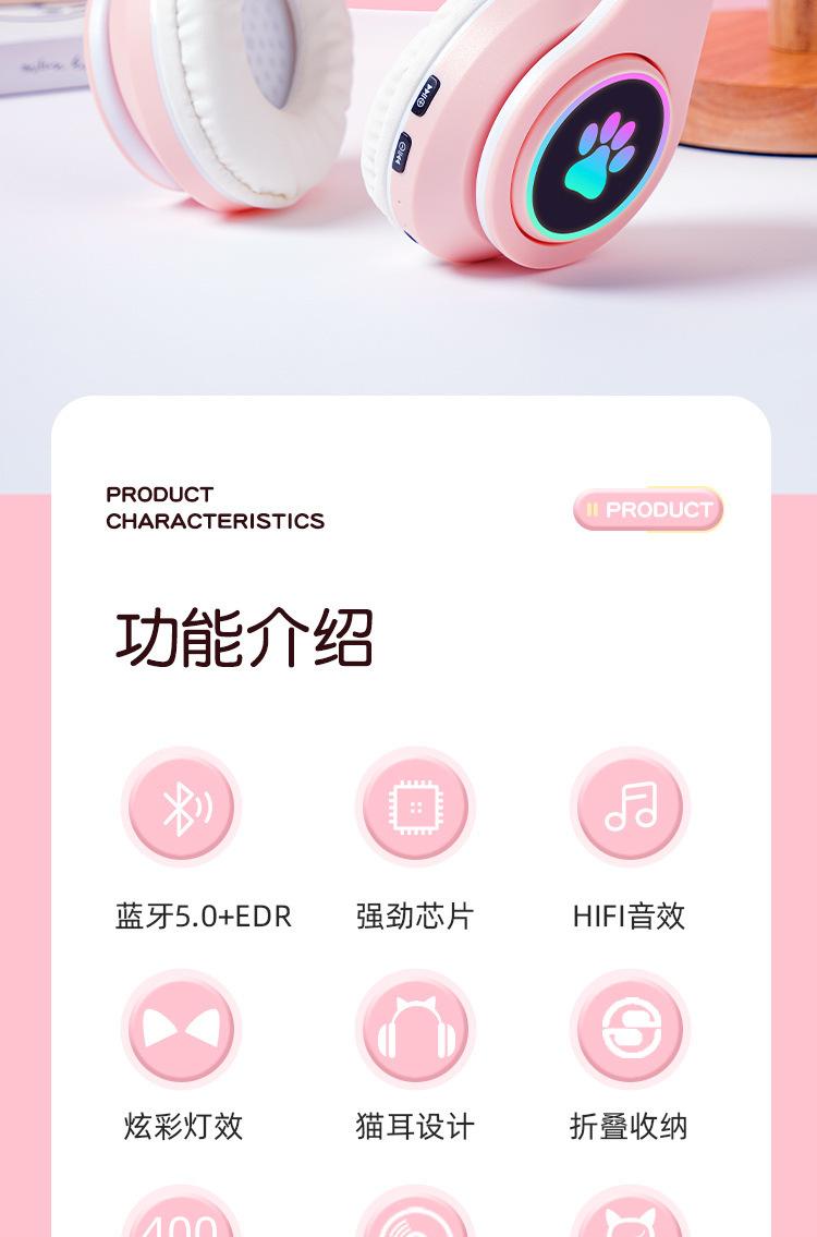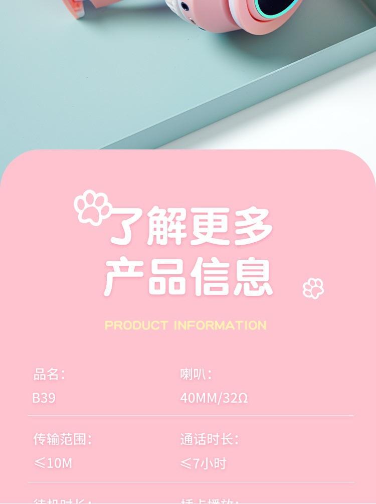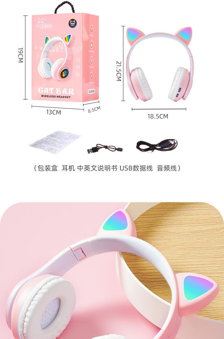 Auriculares Bluetooth luminosos B39M con orejas de gato, batería de larga duración, directos de fábrica, bajos geniales