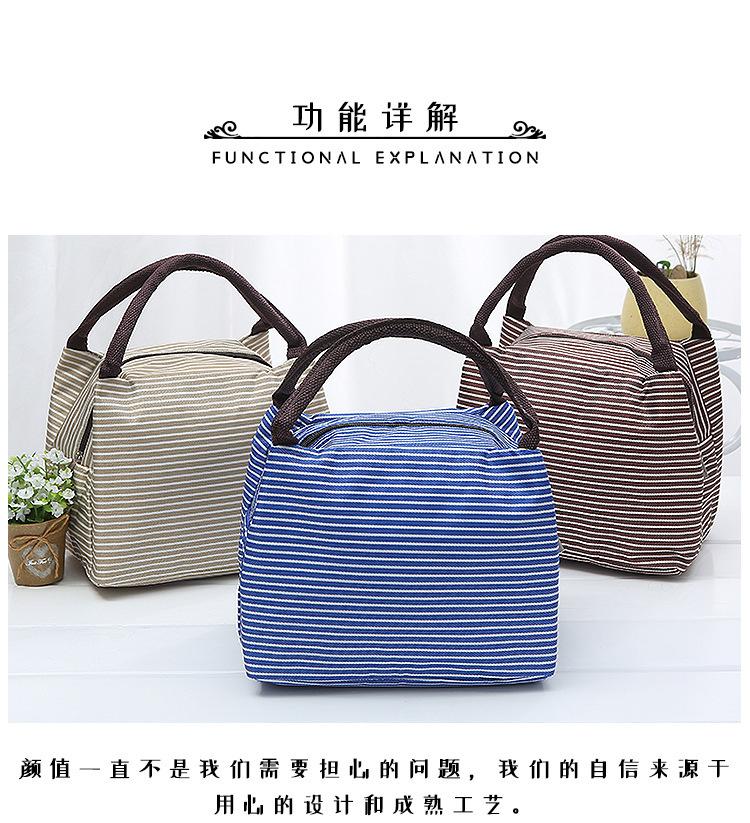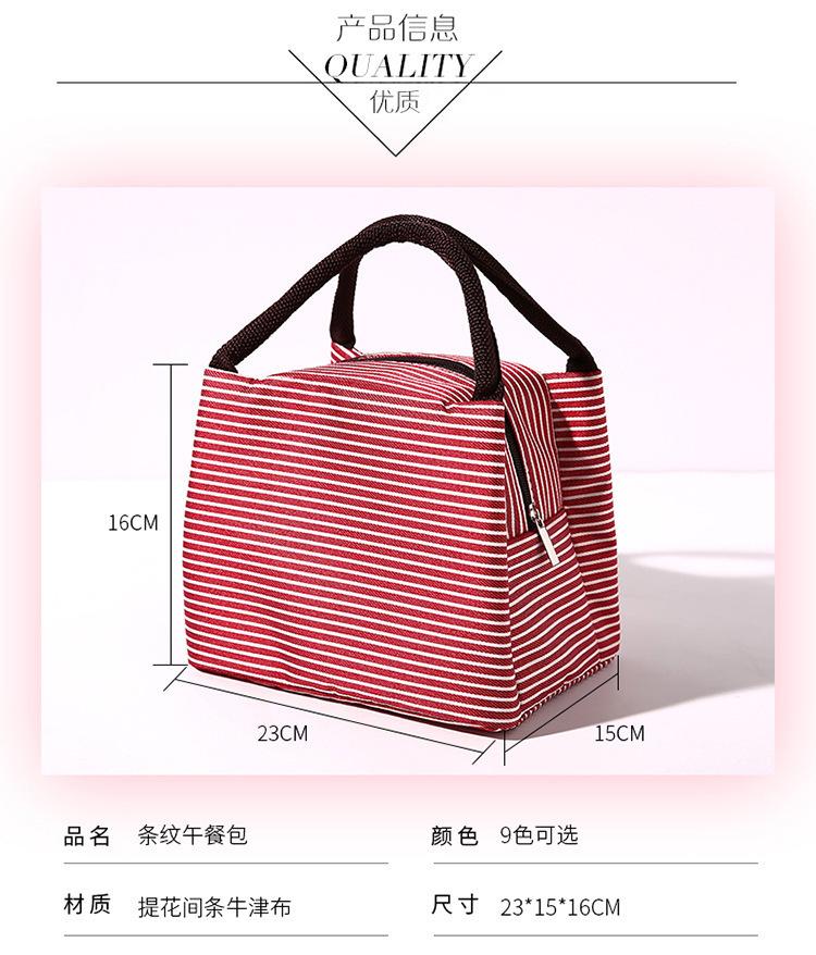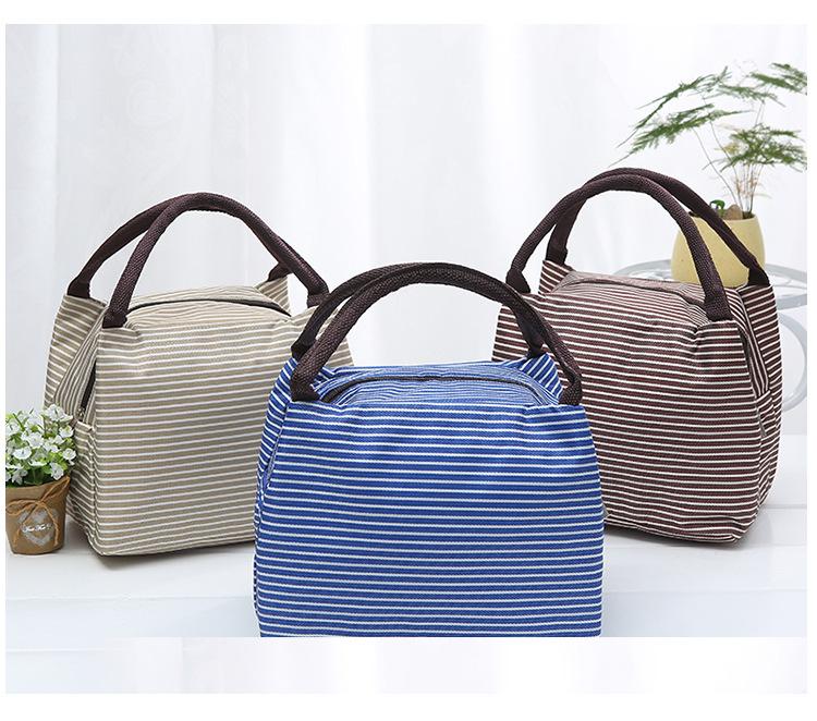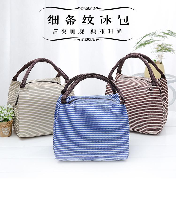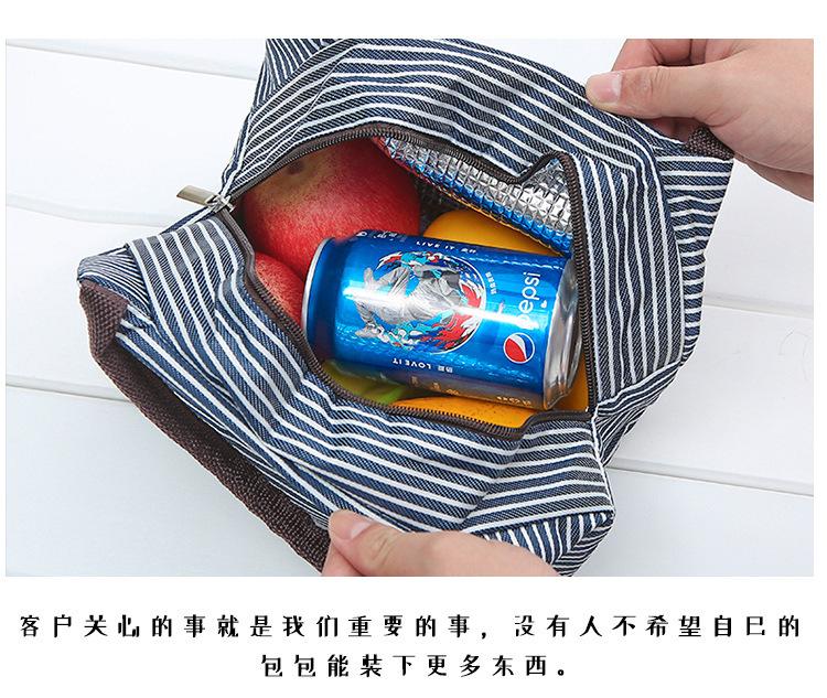Bolsa de almuerzo portátil de aluminio, directa de fábrica, para picnic, al aire libre, con aislamiento a rayas.