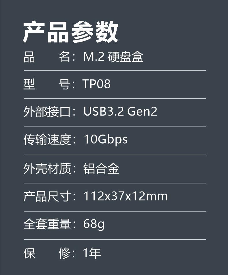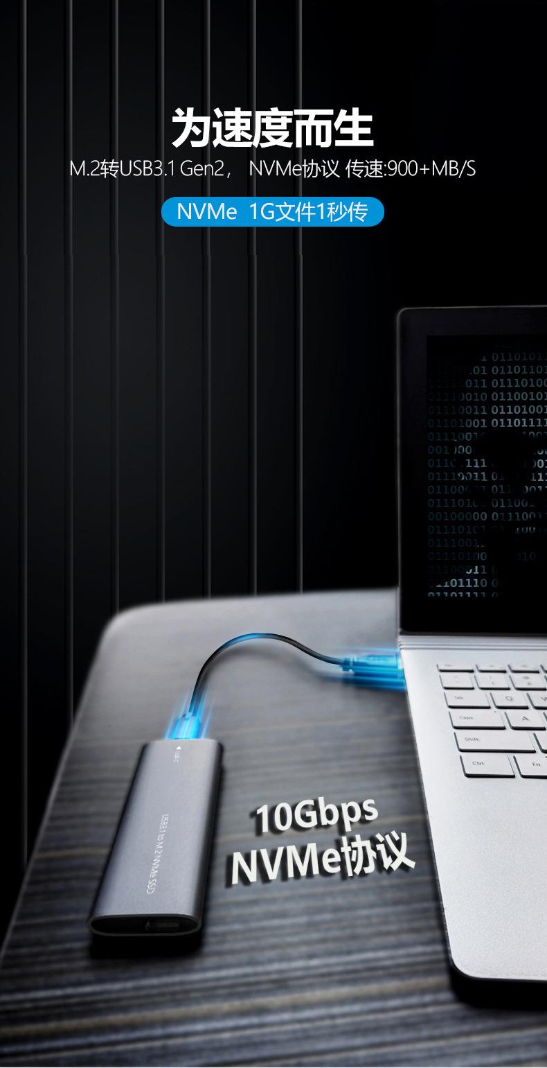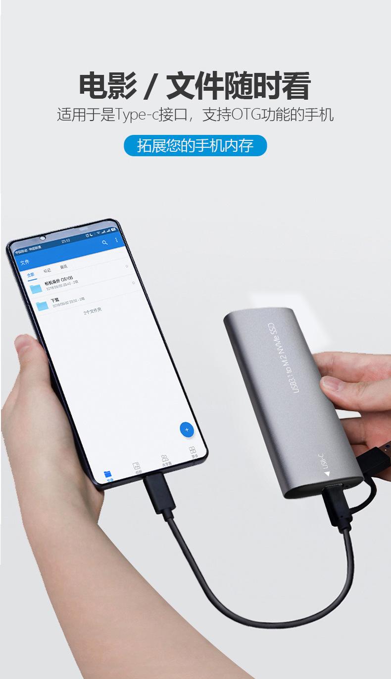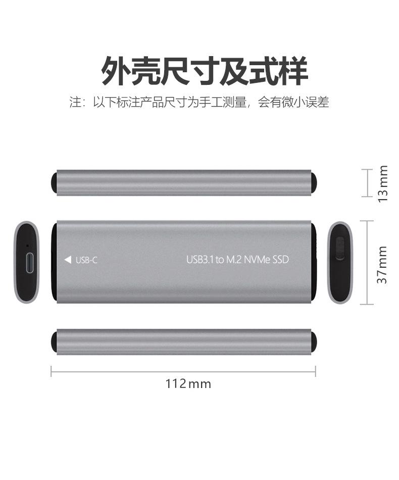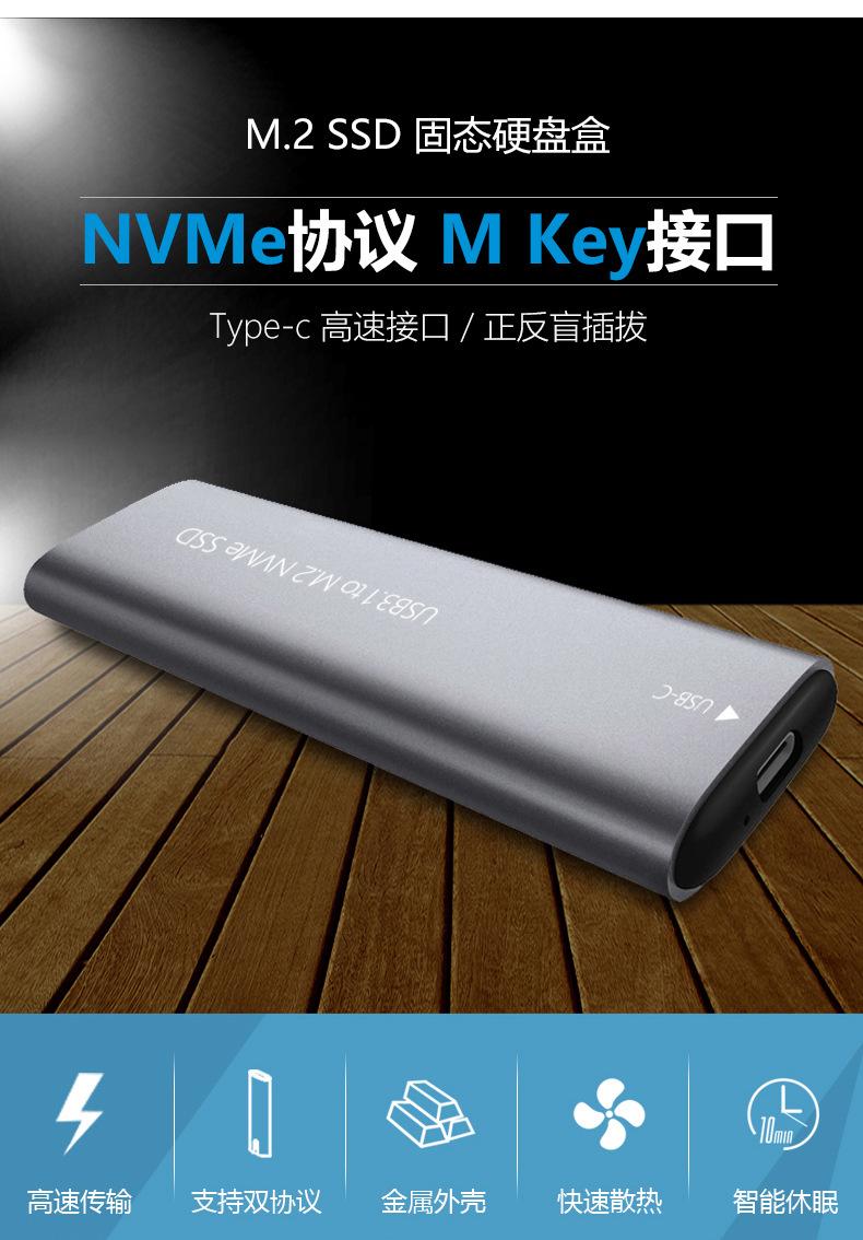 Caja de disco duro m.2 compatible con protocolo NVMe SSD a USB3.1 caja de disco duro móvil externa tipo C de metal sólido