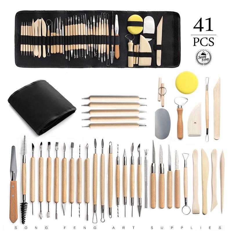 Juego de 41 piezas de herramientas de cerámica transfronterizas, arcilla blanda enrollada, escultura de arcilla auxiliar, combinación de escultura de piedra de arcilla, cuchillo de tallado, bolígrafo de punta