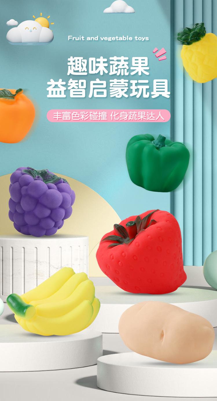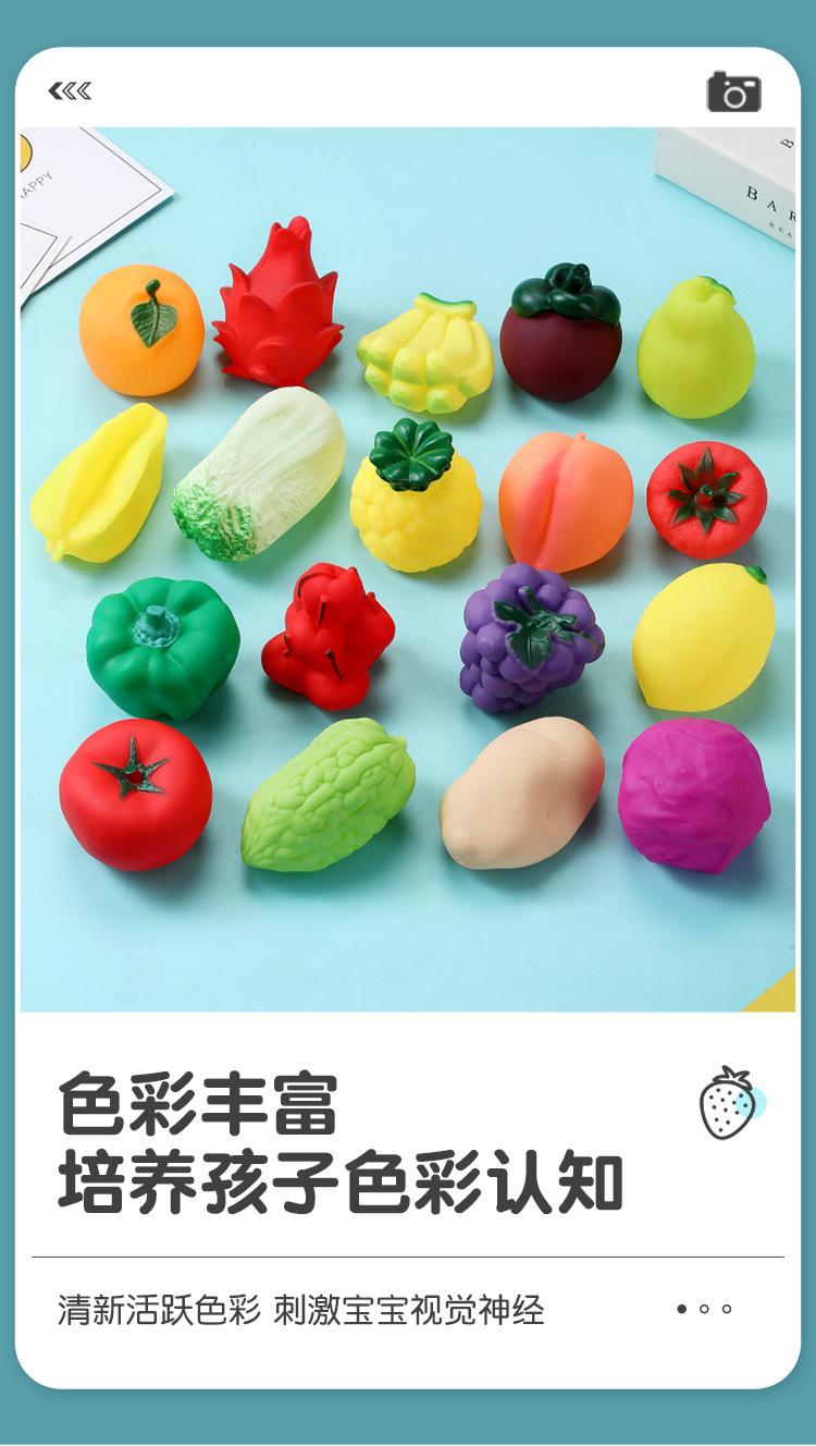 Juguetes de baño para niños, simulación de frutas y verduras, rompecabezas con sonido de amasado, juguetes de agua para baño de bebé, venta al por mayor