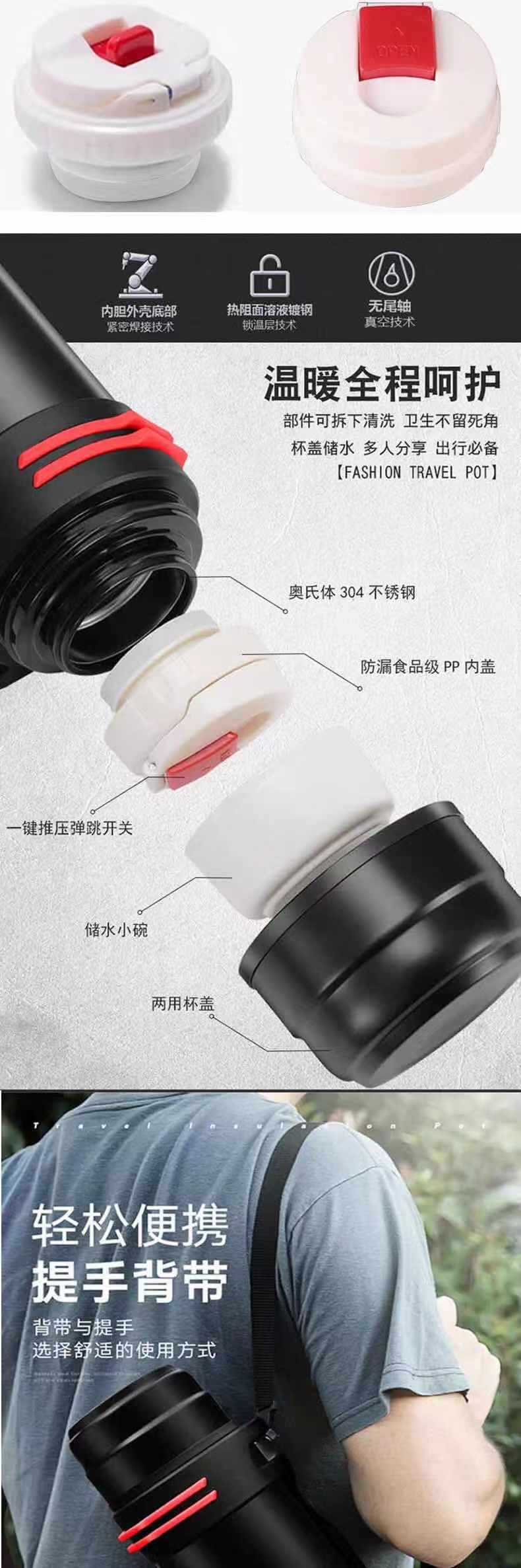 800ml upgraded sliding cover + strap, 1000ml upgraded sliding cover + strap, 1.2 sliding lid + small bowl, 1.5...