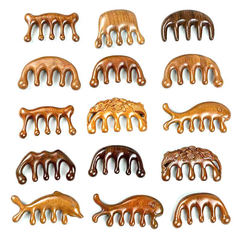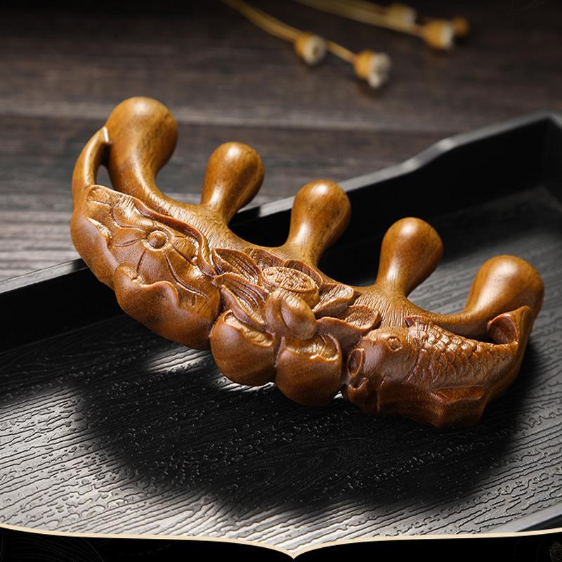 Dragon phoenix sandalwood round air cushion comb, Golden sandalwood square comb, Haozhu massage comb, Five bal...