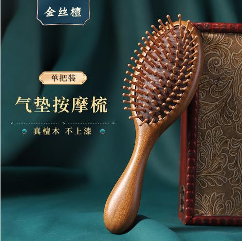 Peine de madera de sándalo dorado sándalo peine de bolsa de aire masaje de cabeza peine de madera cabello rizado peine de tabla grande peine cojín de aire venta al por mayor