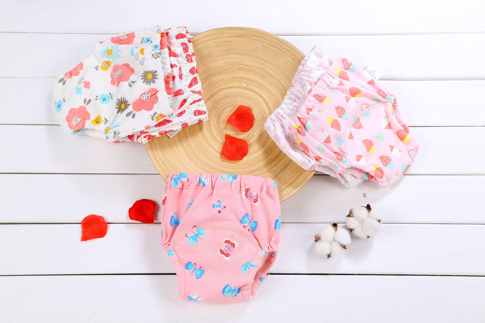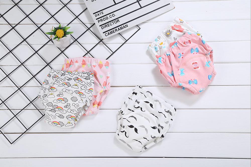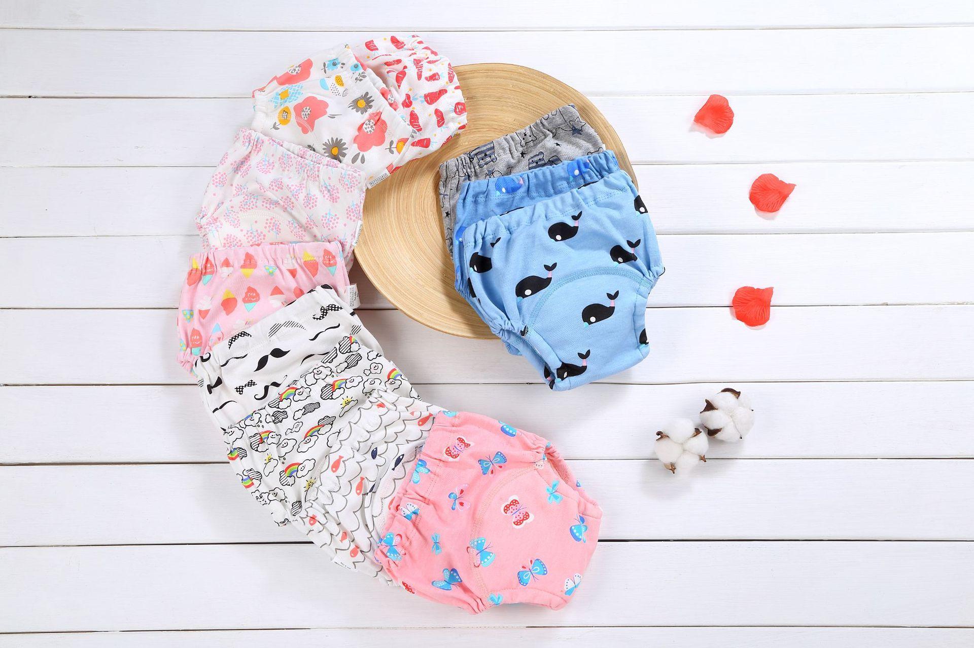 Los pañales de entrenamiento lavables tienen cintura y piernas elásticas suaves, son cómodos y se ajustan, pueden contener 1 o 2 micciones según la cantidad de orina y están diseñados como ropa interior pequeña, lo que permite que el bebé se mueva con mayor libertad.