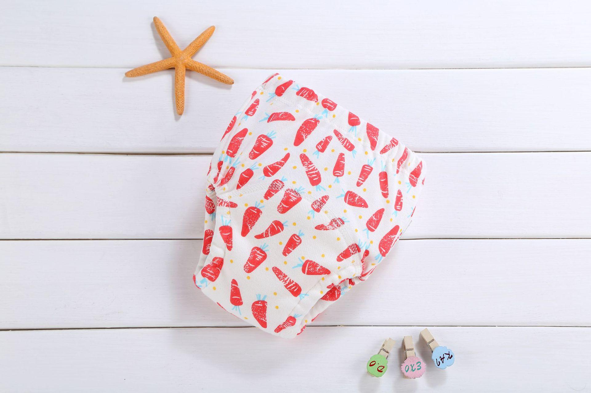 Los pañales de entrenamiento lavables son más económicos e ideales que los desechables. En primer lugar, los pañales de entrenamiento se pueden lavar y reutilizar, mientras que los desechables solo se pueden usar una vez. Obviamente, no necesitamos gastar mucho dinero en pañales. En segundo lugar, debido a la sequedad causada por las sustancias químicas de los pañales desechables, los bebés no se dan cuenta después de orinar, por lo que es difícil cultivar el hábito de quitárselos y cambiarlos. La sensación ligeramente húmeda de nuestra tela de algodón es perfecta para cultivar esta conciencia en el bebé, para que pueda ponerse y quitarse los pantalones lentamente, ir al baño y adaptarse completamente a usar pantalones normales.