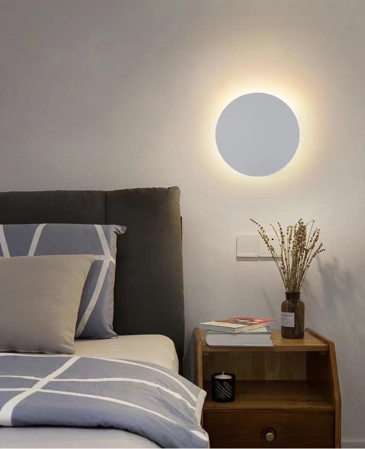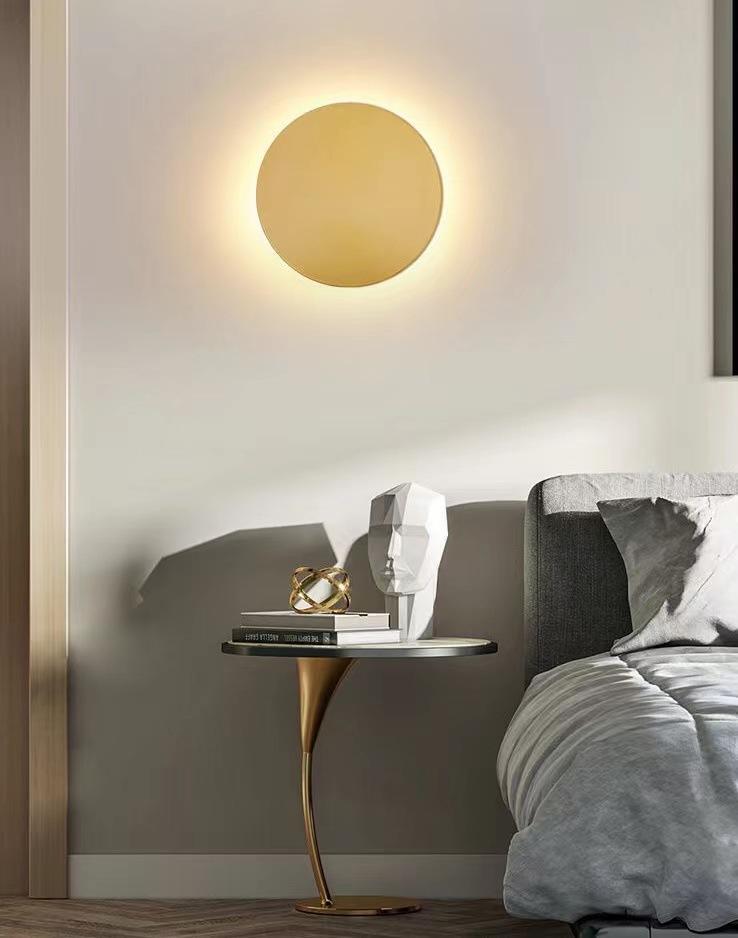 Compra Lámpara de pared LED redonda, lámpara de noche para dormitorio, fondo de sala de estar dorado, pared moderna, pasillo simple, escaleras creativas personalizadas al por mayor en Joom.pro