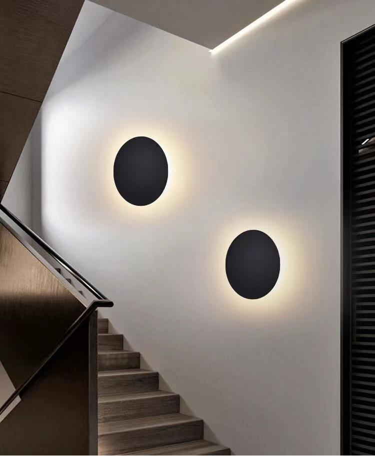 Lámpara de pared LED redonda, lámpara de noche para dormitorio, fondo de sala de estar dorado, pared moderna, pasillo simple, escaleras creativas personalizadas