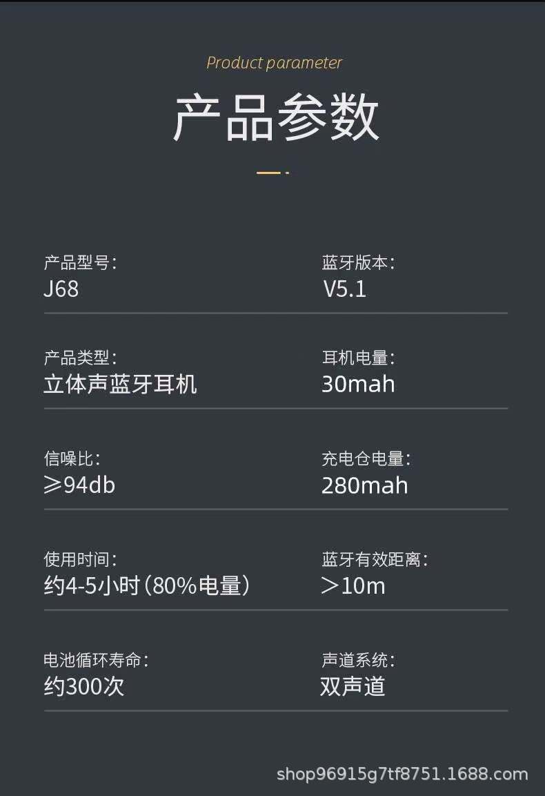 Auriculares inalámbricos J68 con pantalla digital, potentes auriculares deportivos con reducción de ruido, sonido de alta calidad y larga duración.