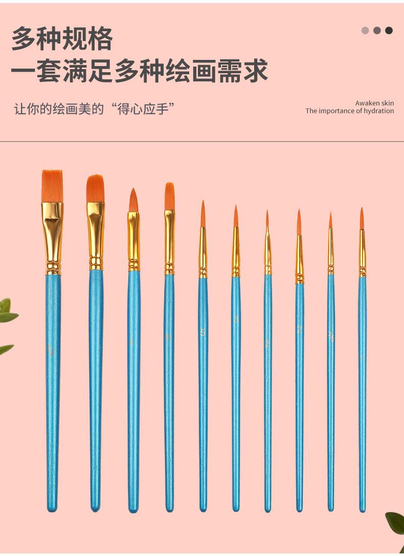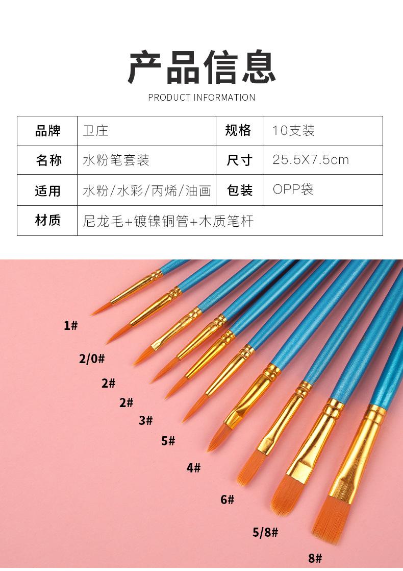 Juego de pinceles de acuarela, acrílico y óleo Weizhuang, 10 unidades, de nailon con diferentes cabezales, venta al por mayor