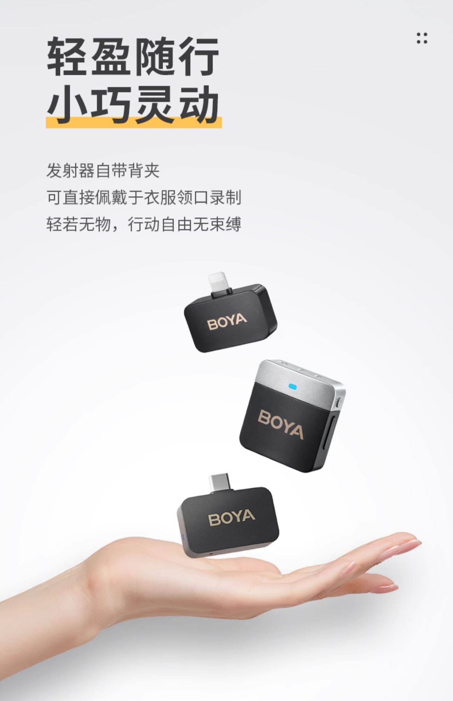 Micrófono inalámbrico Boya BY-M1V para cámara de teléfono móvil en vivo con estéreo de doble canal