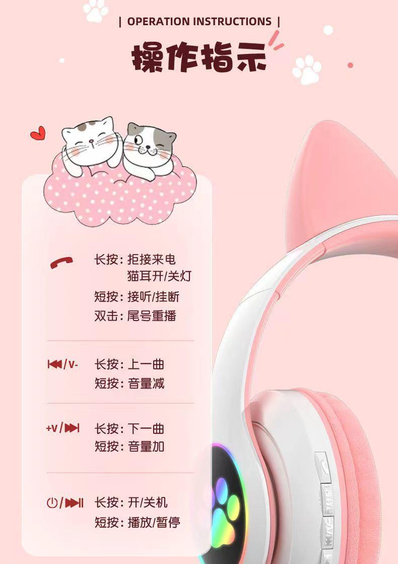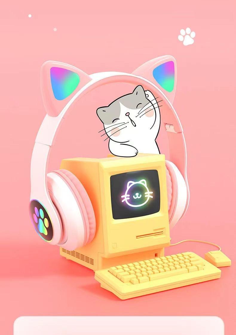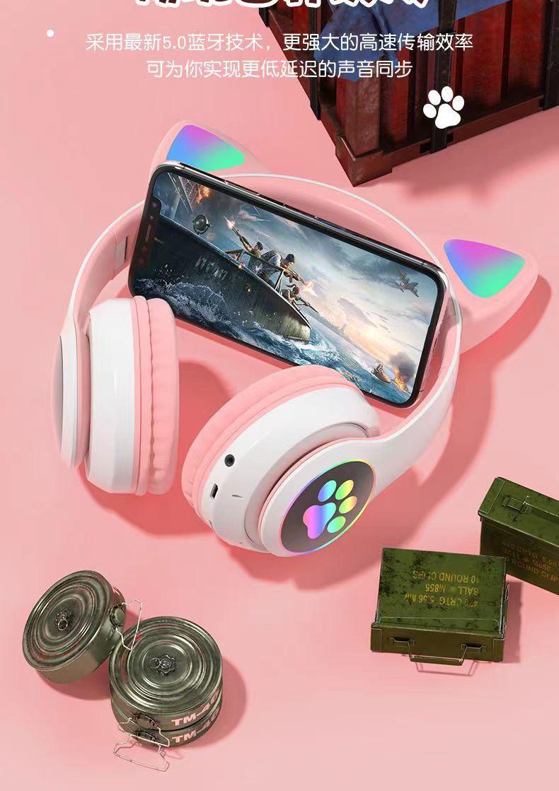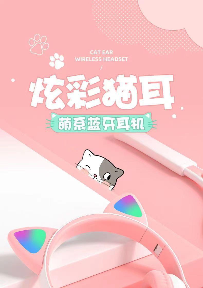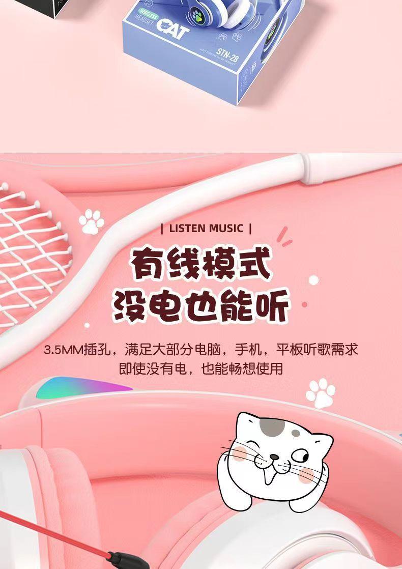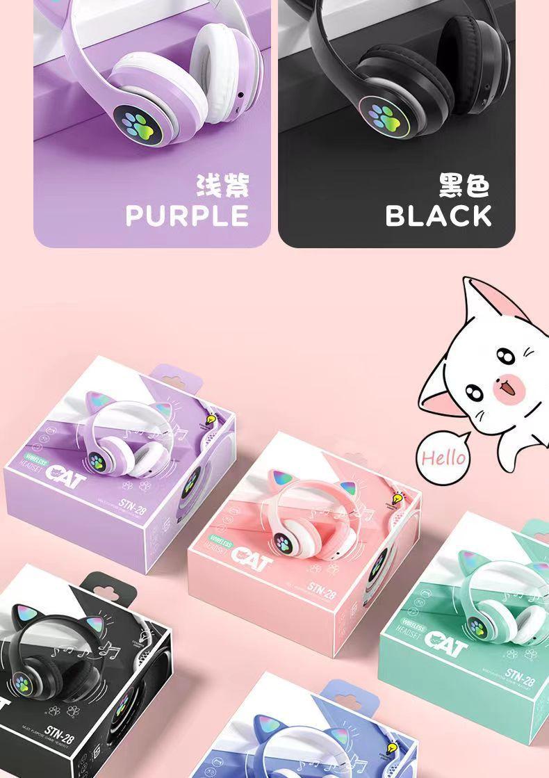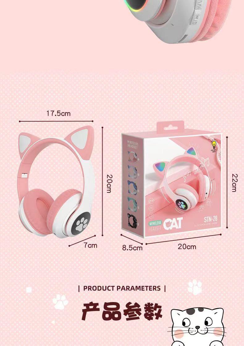 Auriculares inalámbricos con Bluetooth y orejas de gato luminosos STN-28, con explosiones transfronterizas, bonitos, nuevos, venta directa de fábrica.