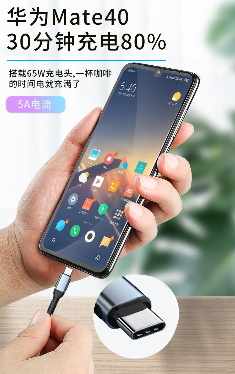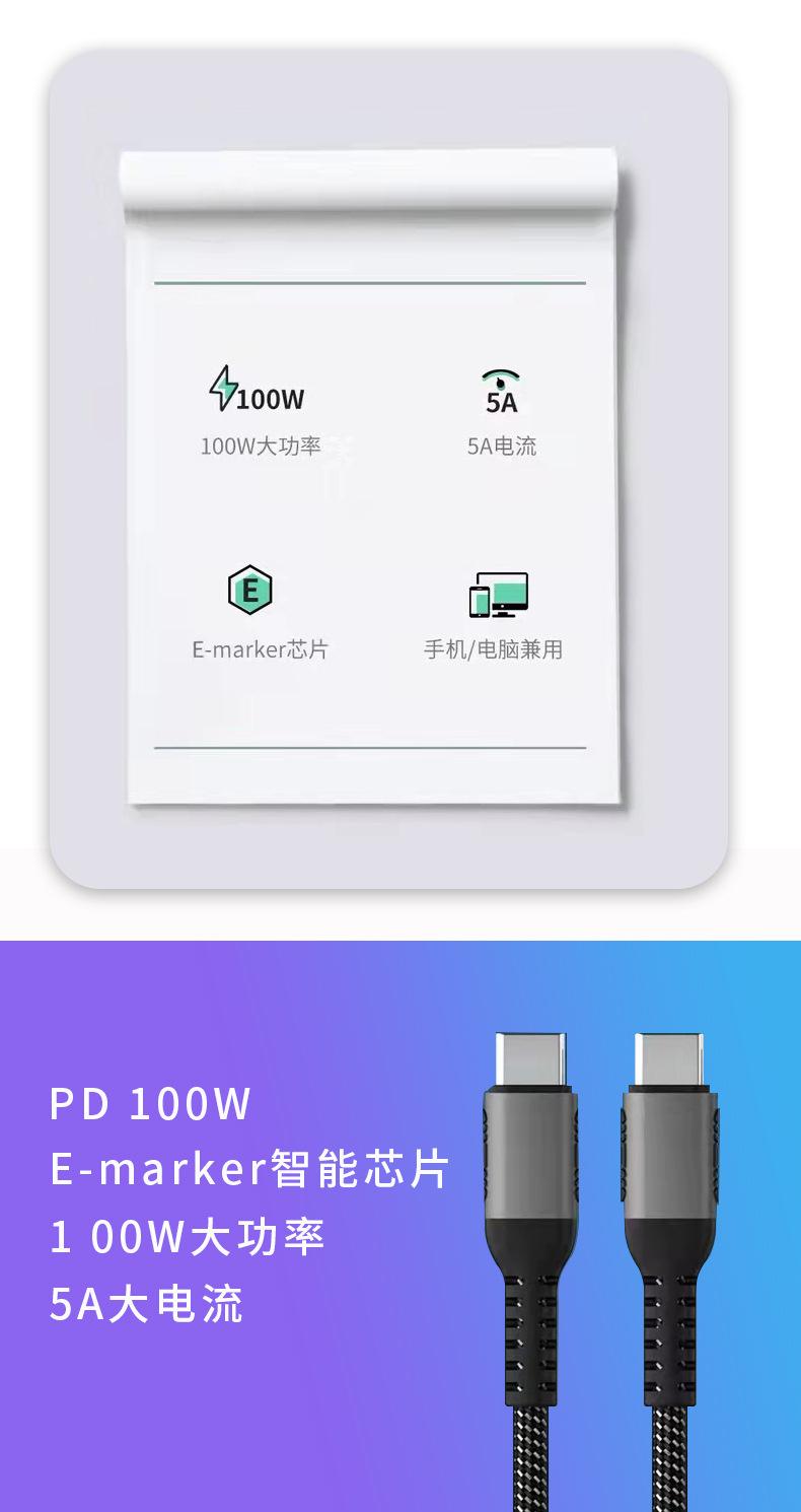 Cable de datos de carga rápida PD de 100 W y 5 A para Huawei, Apple 15, teléfono móvil, cable de alimentación para portátil, tipo C.