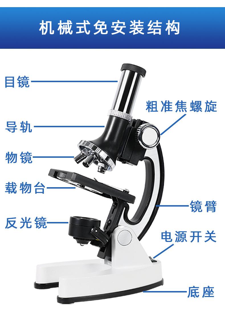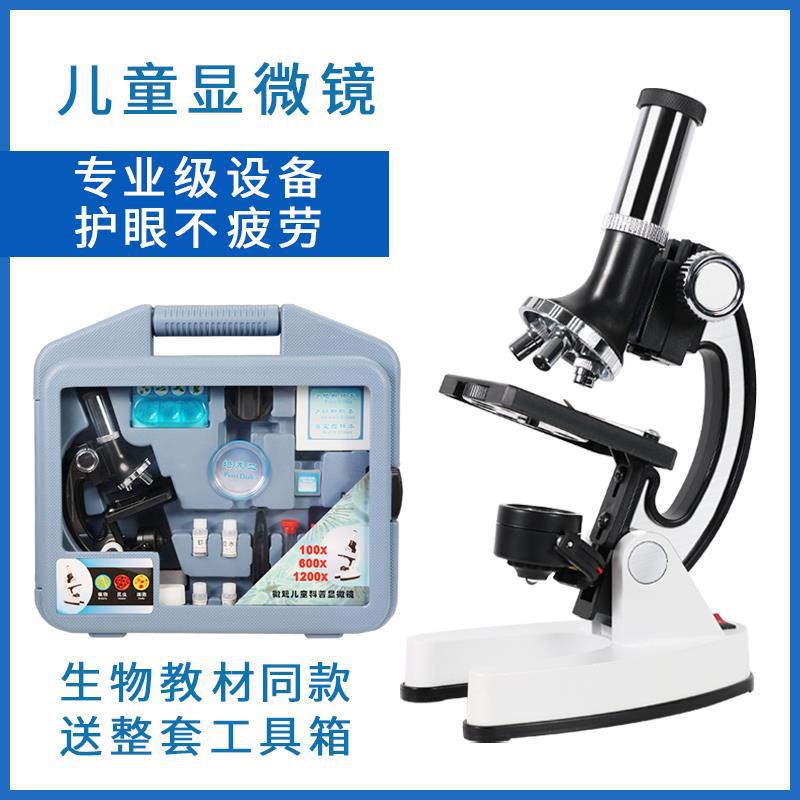 Microscopio óptico de metal para niños con fuente de luz HD 1200 veces, experimento científico para estudiantes, puede ver bacterias