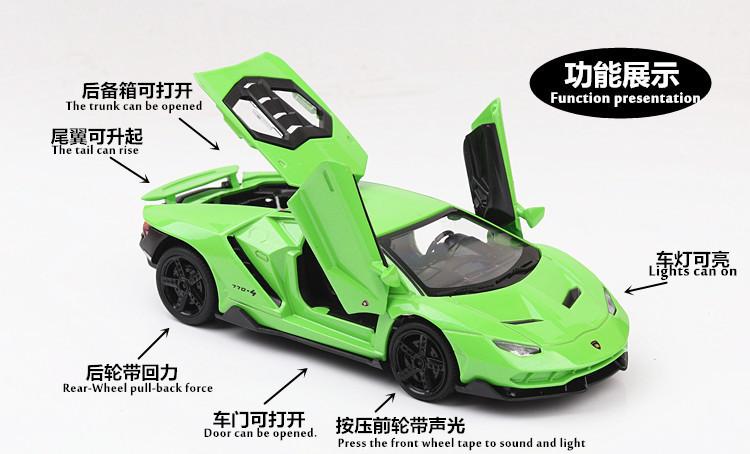 Modelo de coche de aleación Lamborghini nuevo lp770. La carrocería es de aleación, la base es de plástico y los neumáticos son de goma.