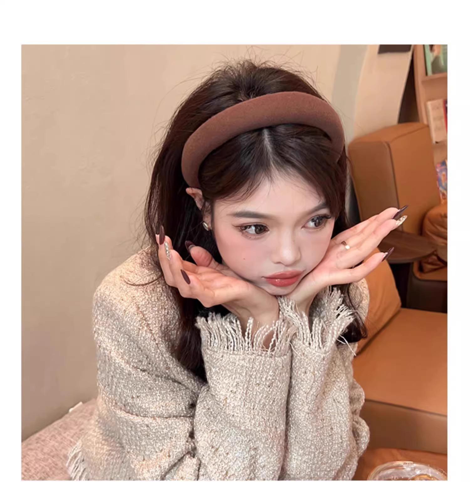 Diadema de esponja marrón Yadan Wind para mujer, horquilla de presión superior craneal alta para otoño e invierno, diadema para lavarse la cara que combina con todo 2024
