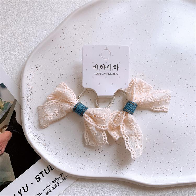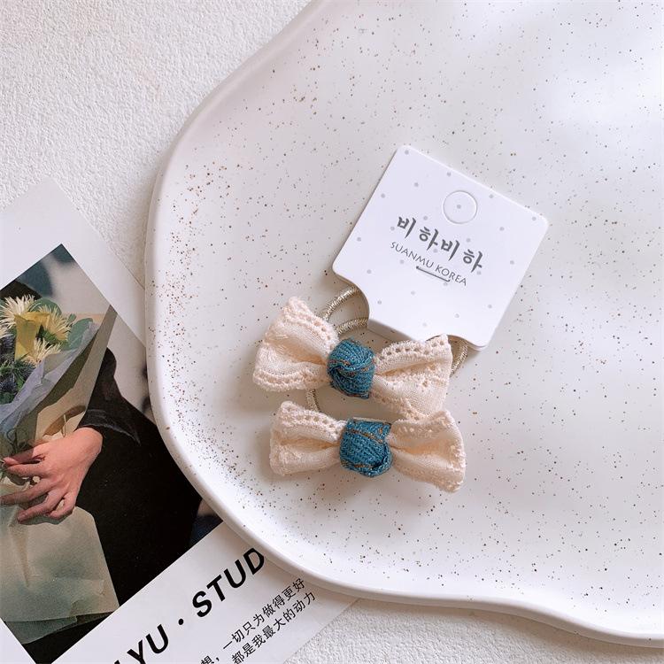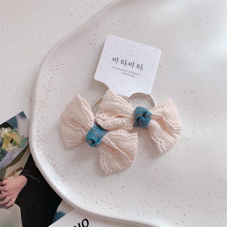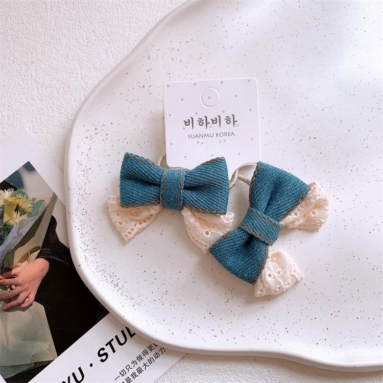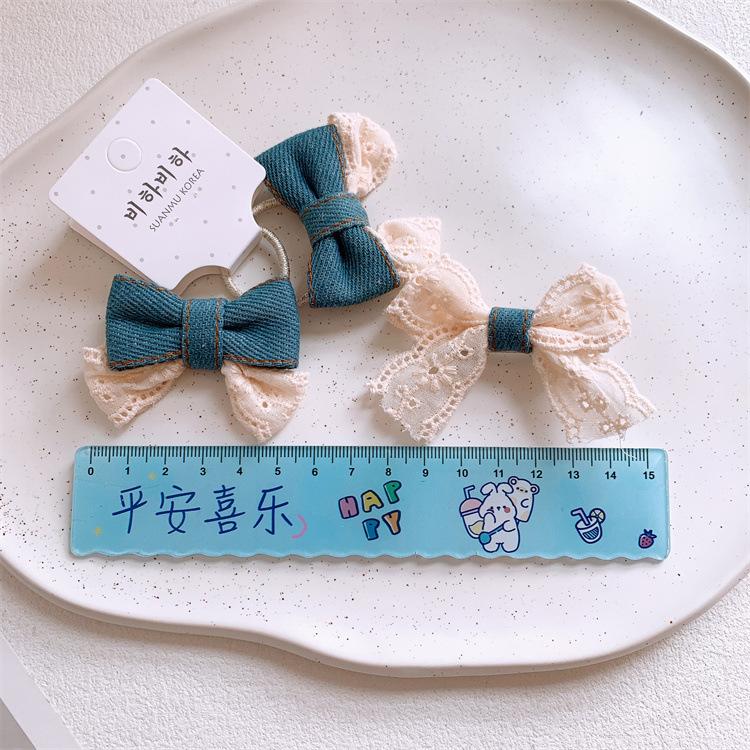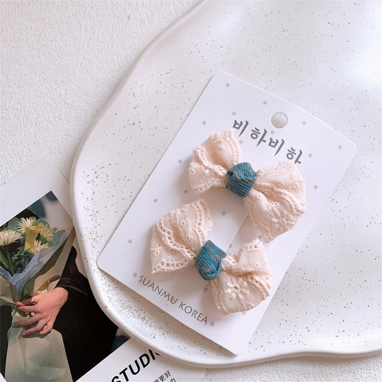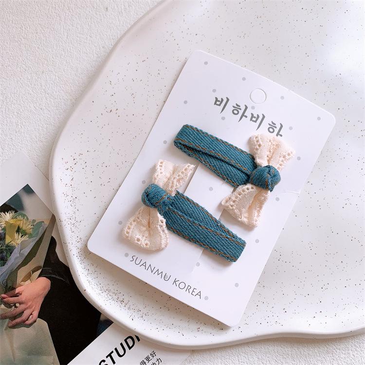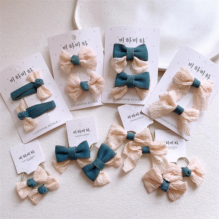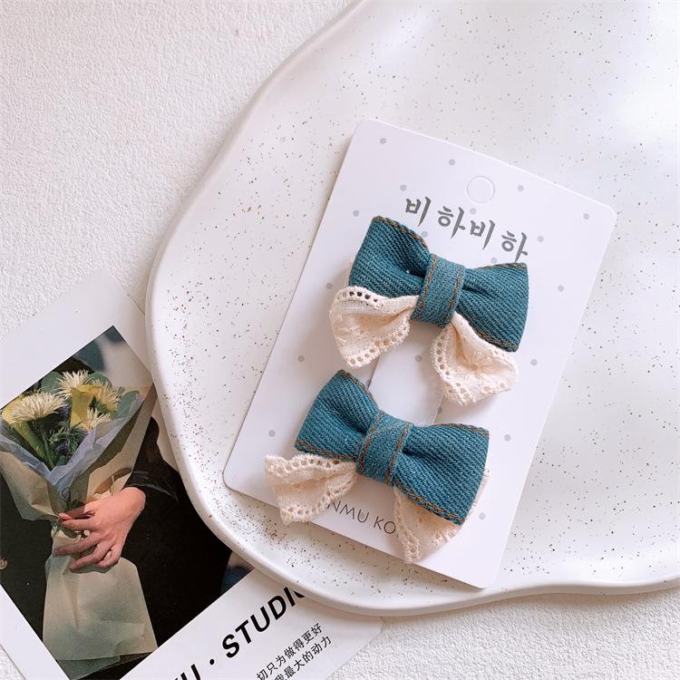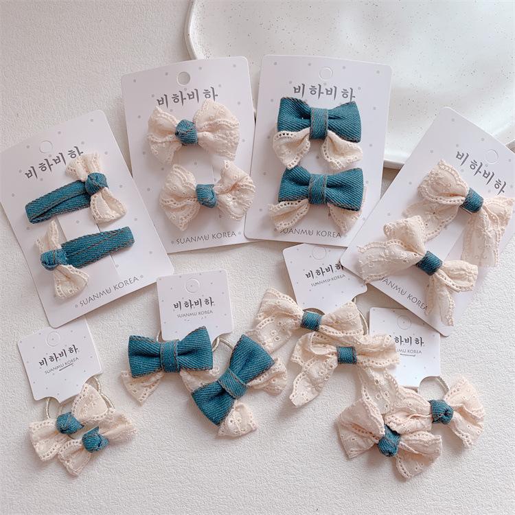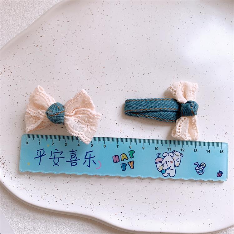Horquilla para el pelo con lazo de color contrastante de vaquero para niña, flequillo lateral con clip BB, aro para el pelo con flores bordadas y huecos de tela para niña
