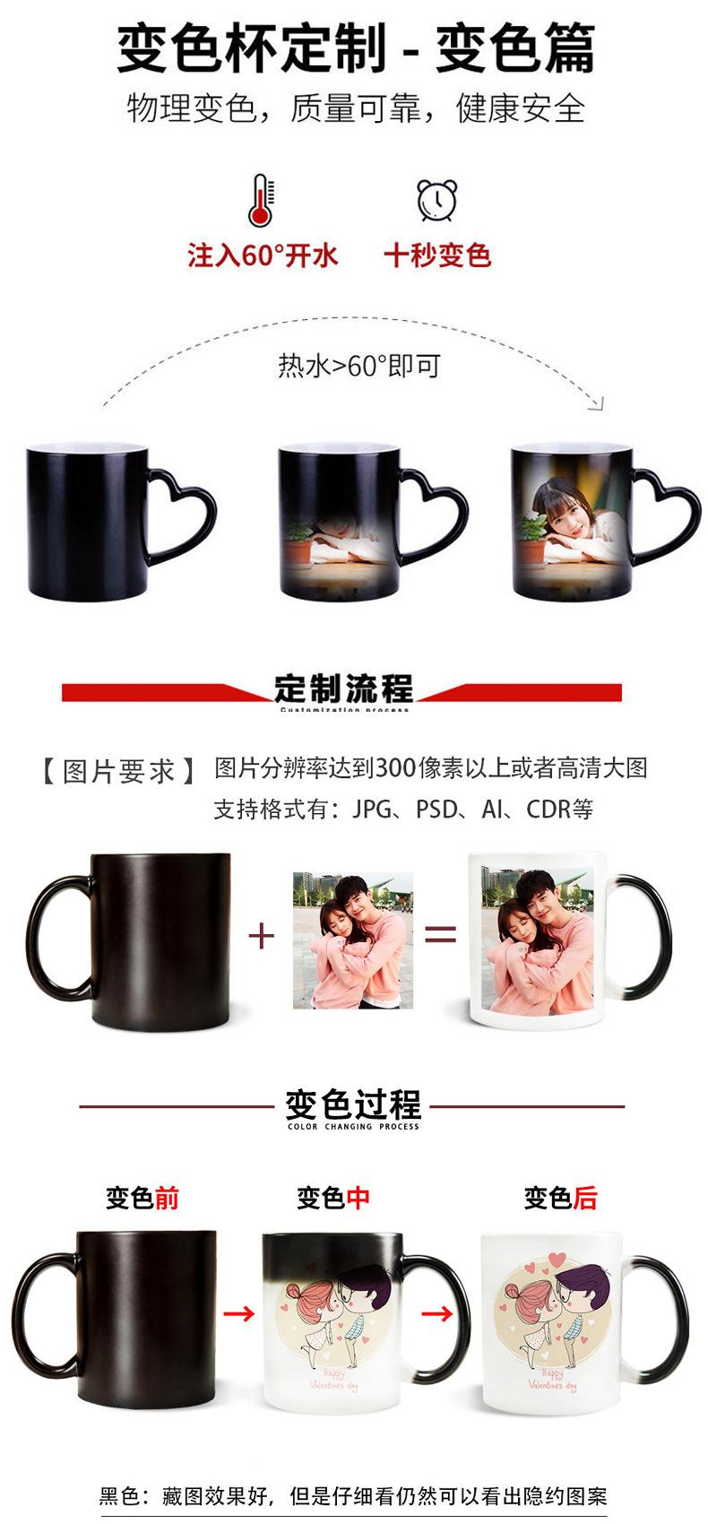 Taza de cerámica con logotipo personalizado, taza creativa, taza de café con revestimiento blanco que cambia de color, taza de agua con publicidad personalizada
