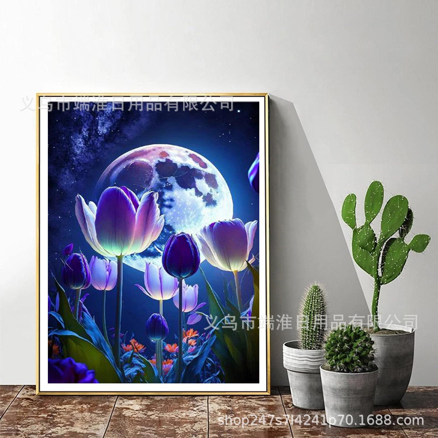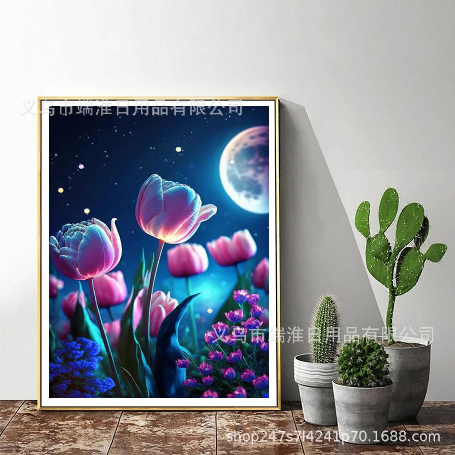 Nuevo Amazon 5diy Pintura de Diamantes Sueño Tulipán Sala de Estar Decorativo Colgante Pintura Directo de Fábrica Punto de Cruz Diamante