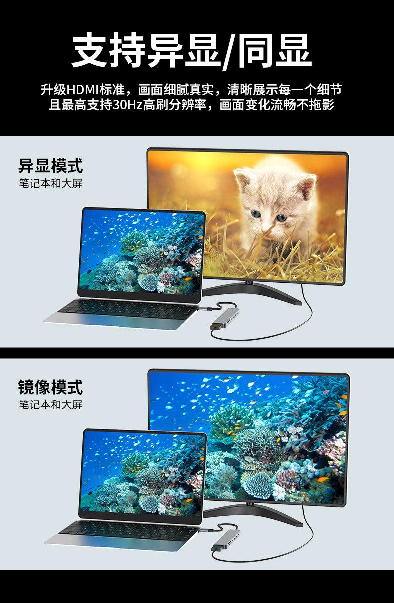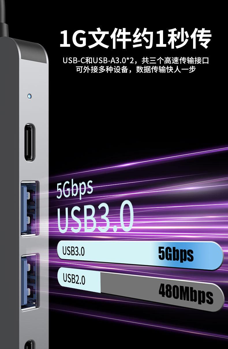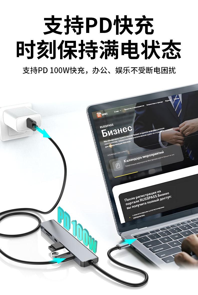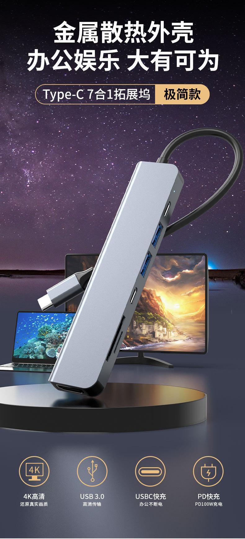 Concentrador divisor de estación de acoplamiento tipo C transfronterizo, concentrador USB 3.0, divisor de pantalla HDMI HD 4K PD100W