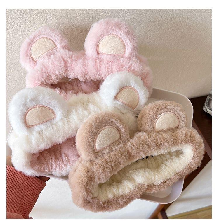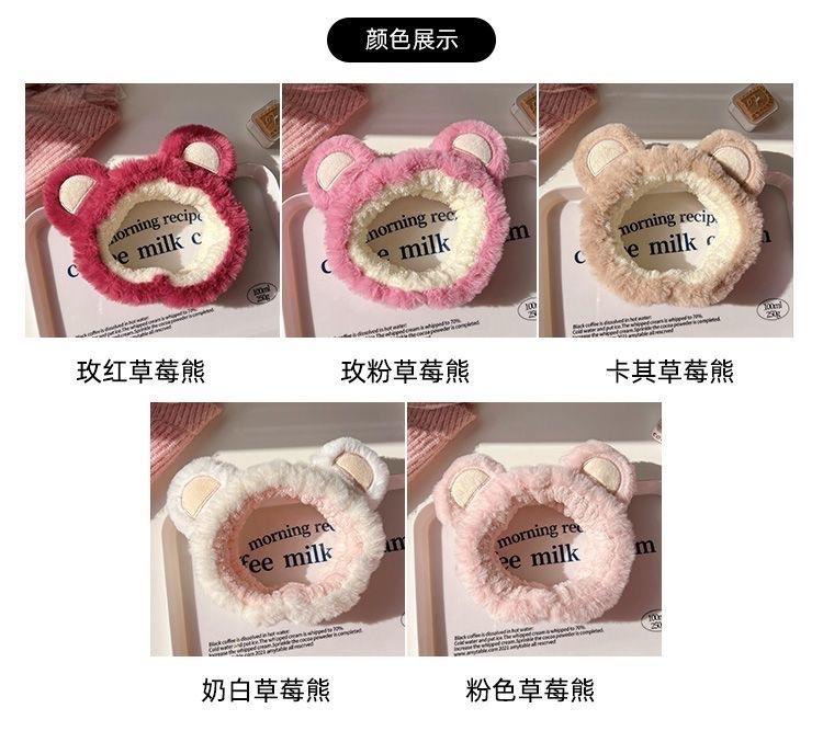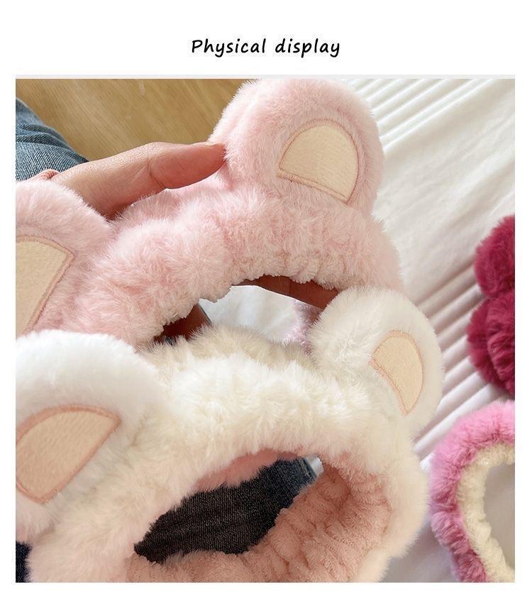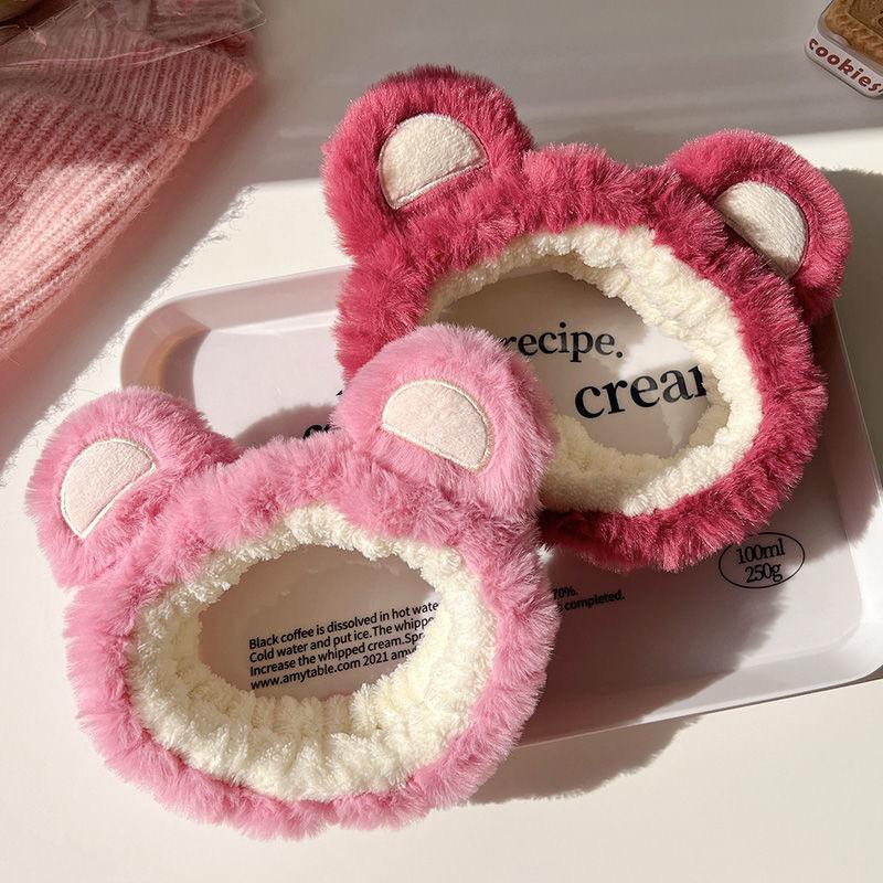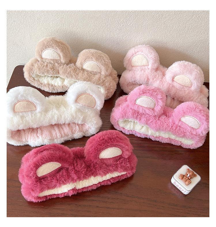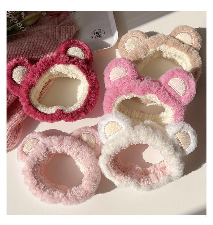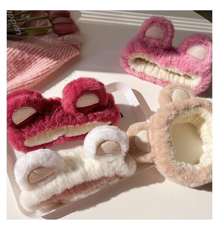 Bonita diadema de oso de peluche para mujer, otoño e invierno, mascarilla facial roja para lavarse la cara, diadema, accesorios para el cabello 2023.