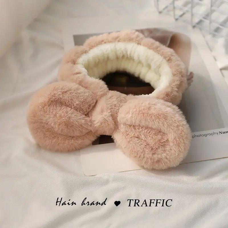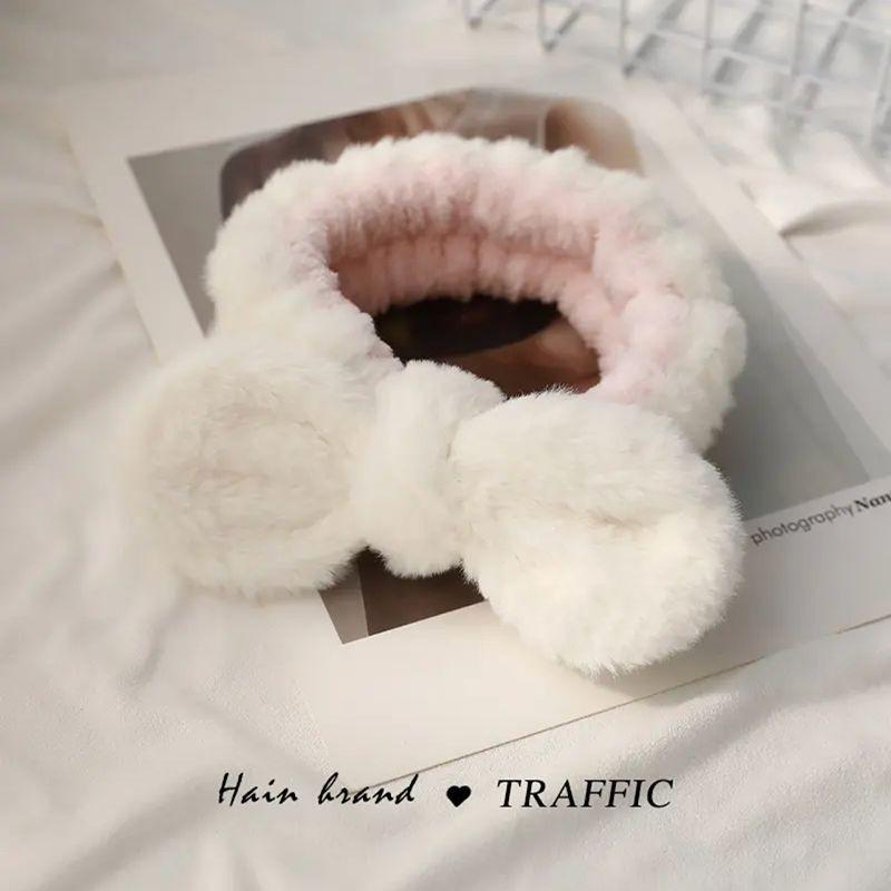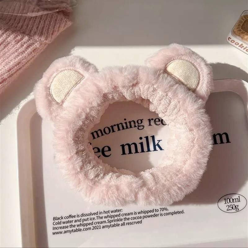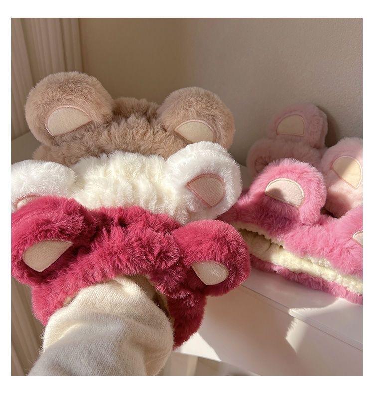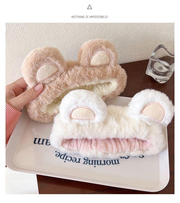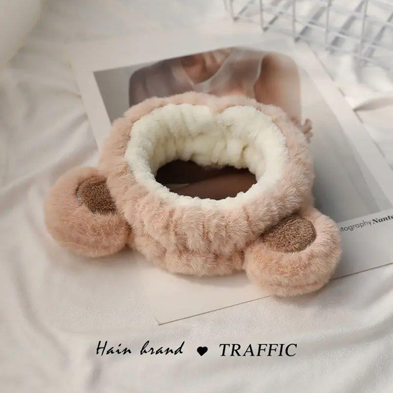 Bonita diadema de oso de peluche para mujer, otoño e invierno, mascarilla facial roja para lavarse la cara, diadema, accesorios para el cabello 2023.