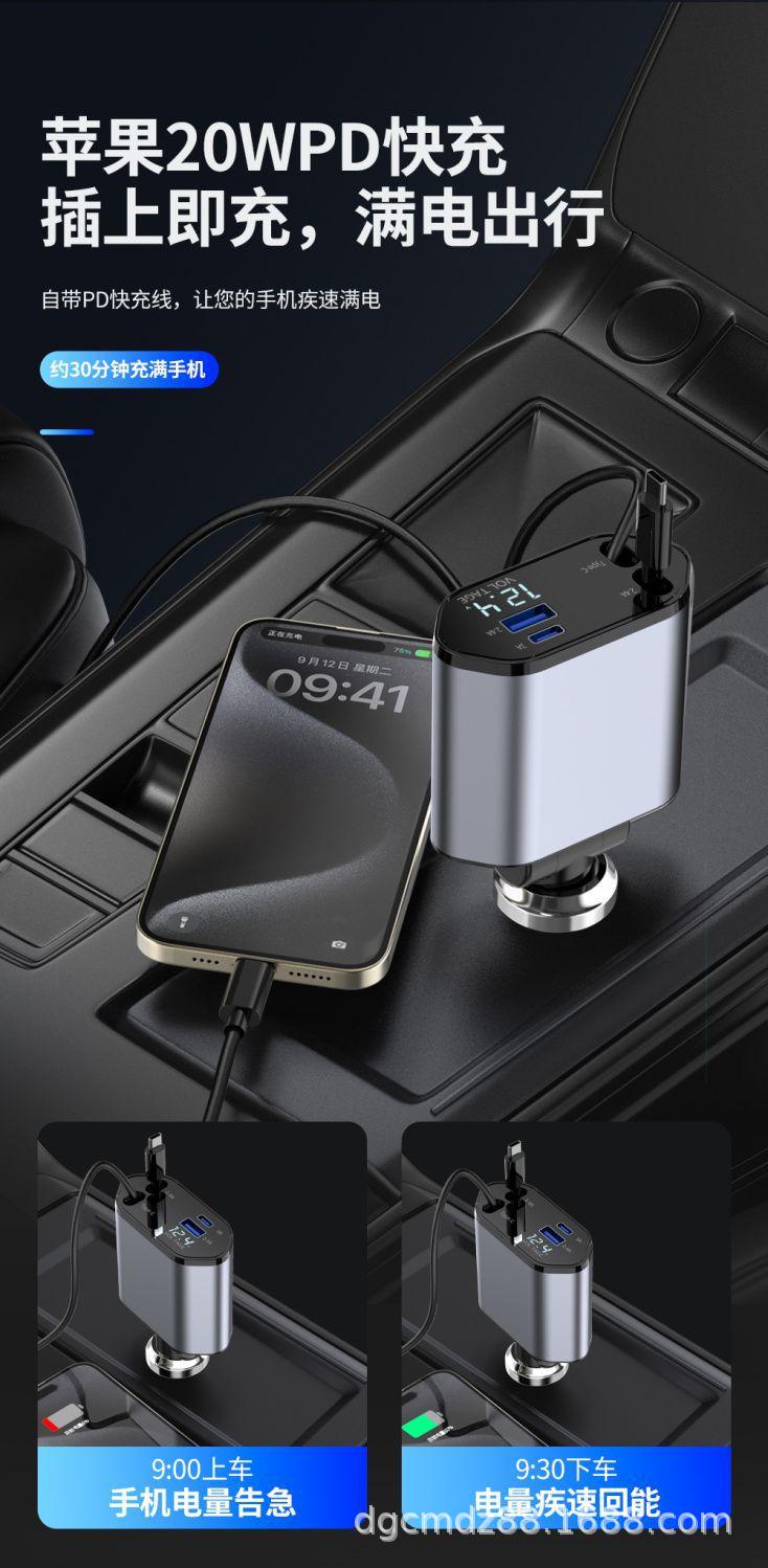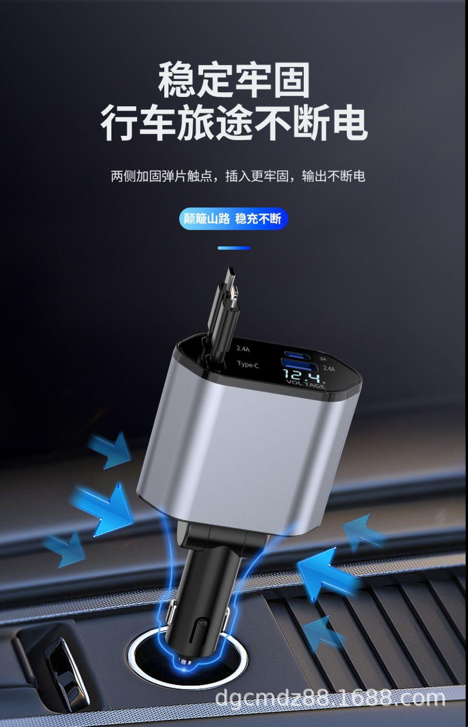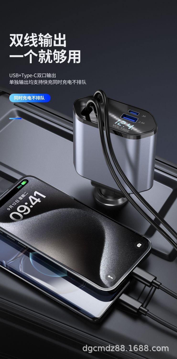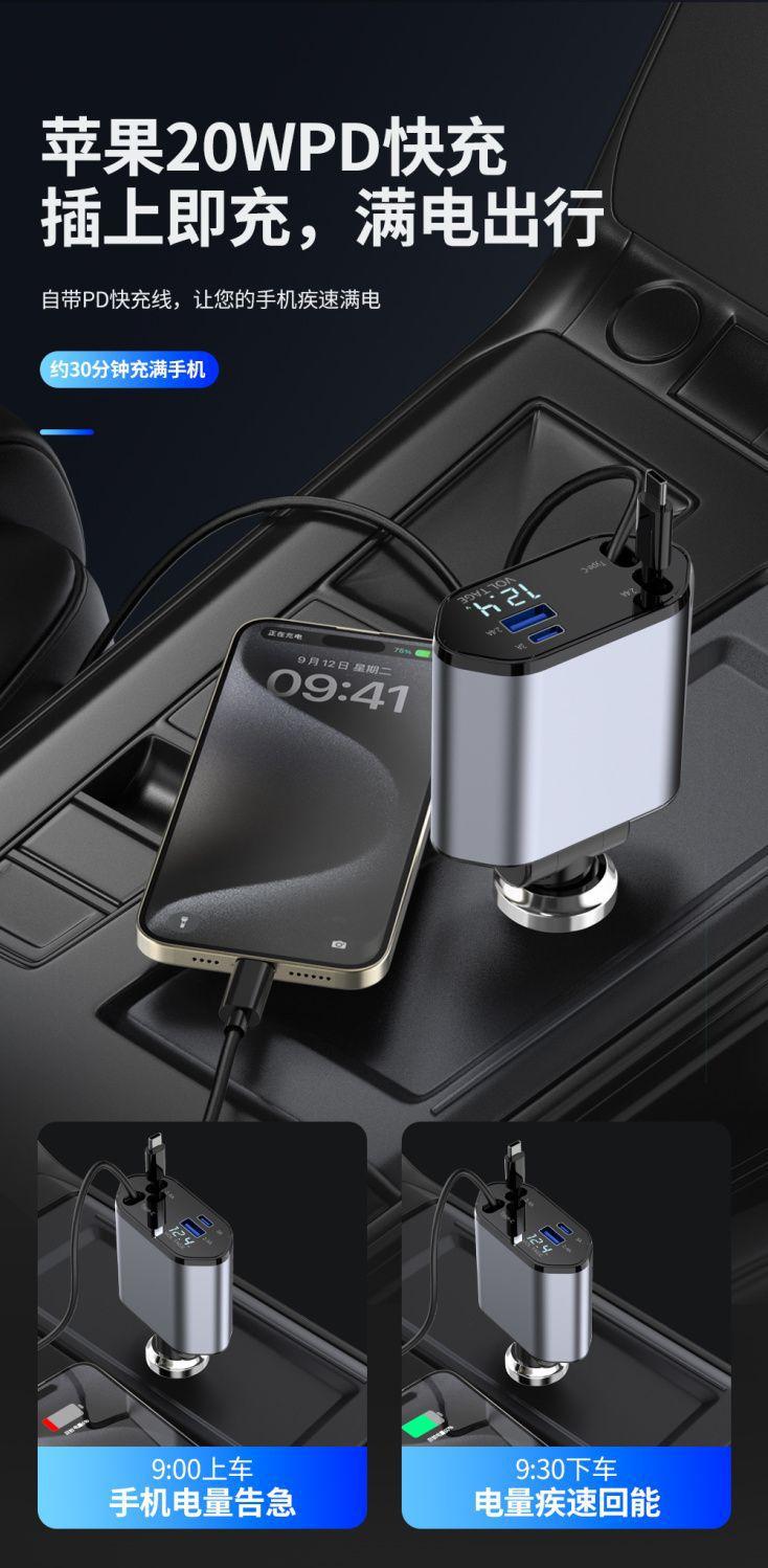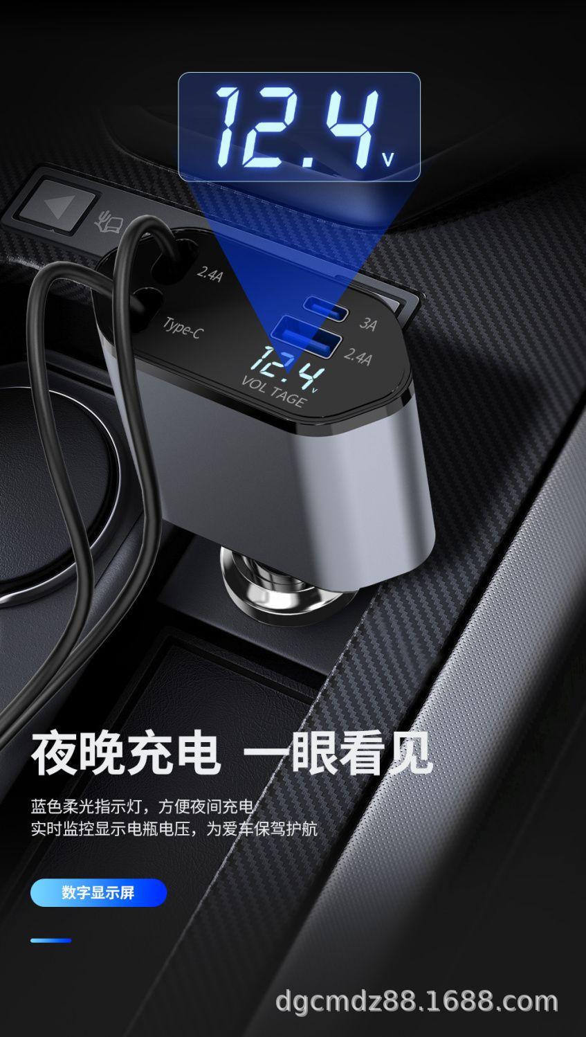 Cargador de Coche Soporta Carga Rápida de 120W, Encendedor de Cigarrillos Multifuncional con Pantalla Digital, Cargador Rápido Transfronterizo 3 en 1 120W