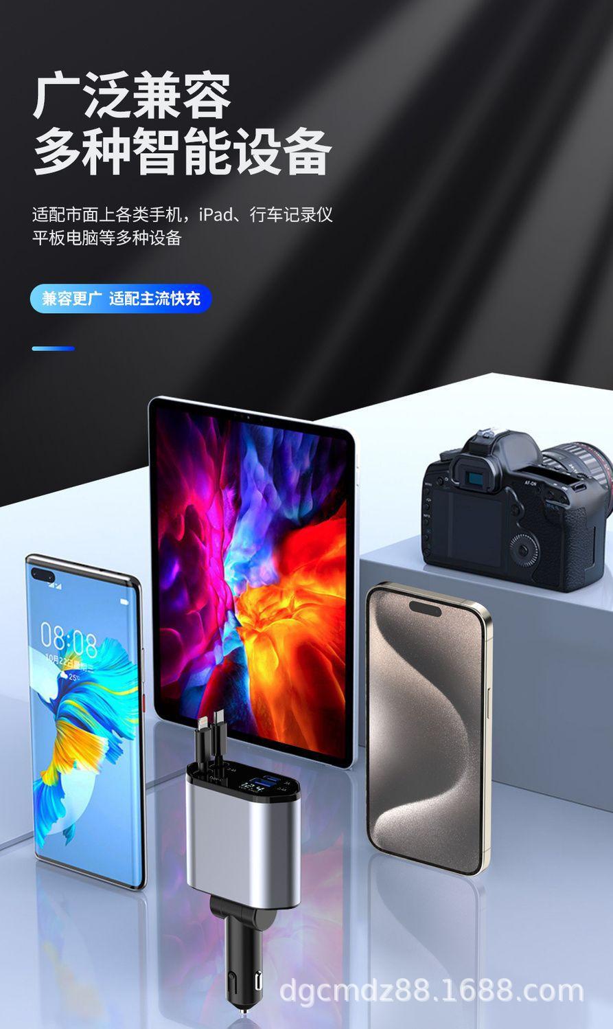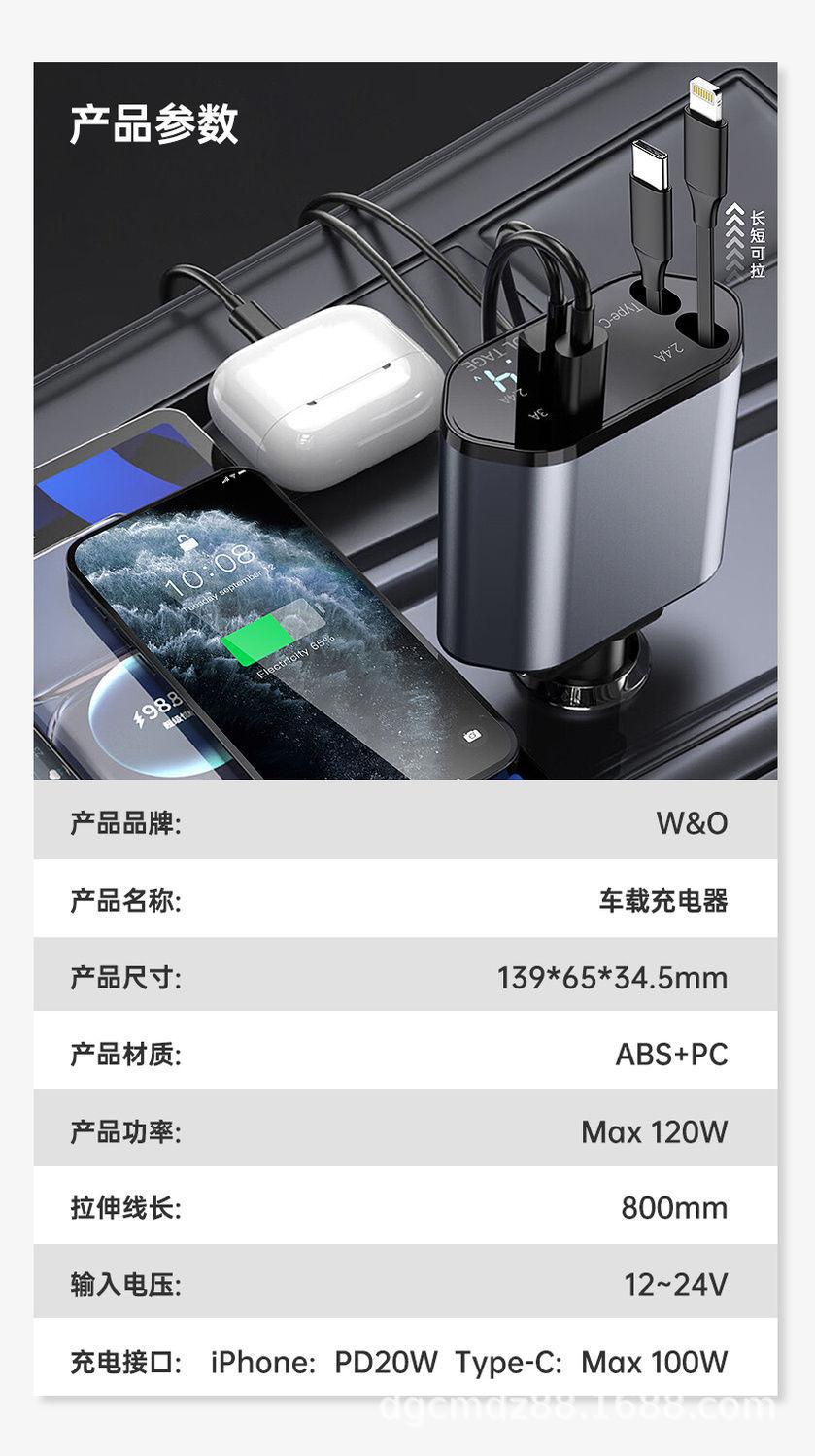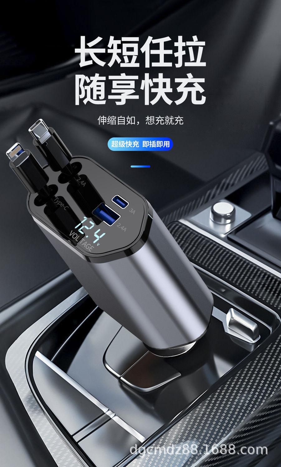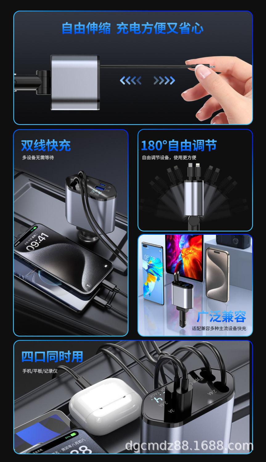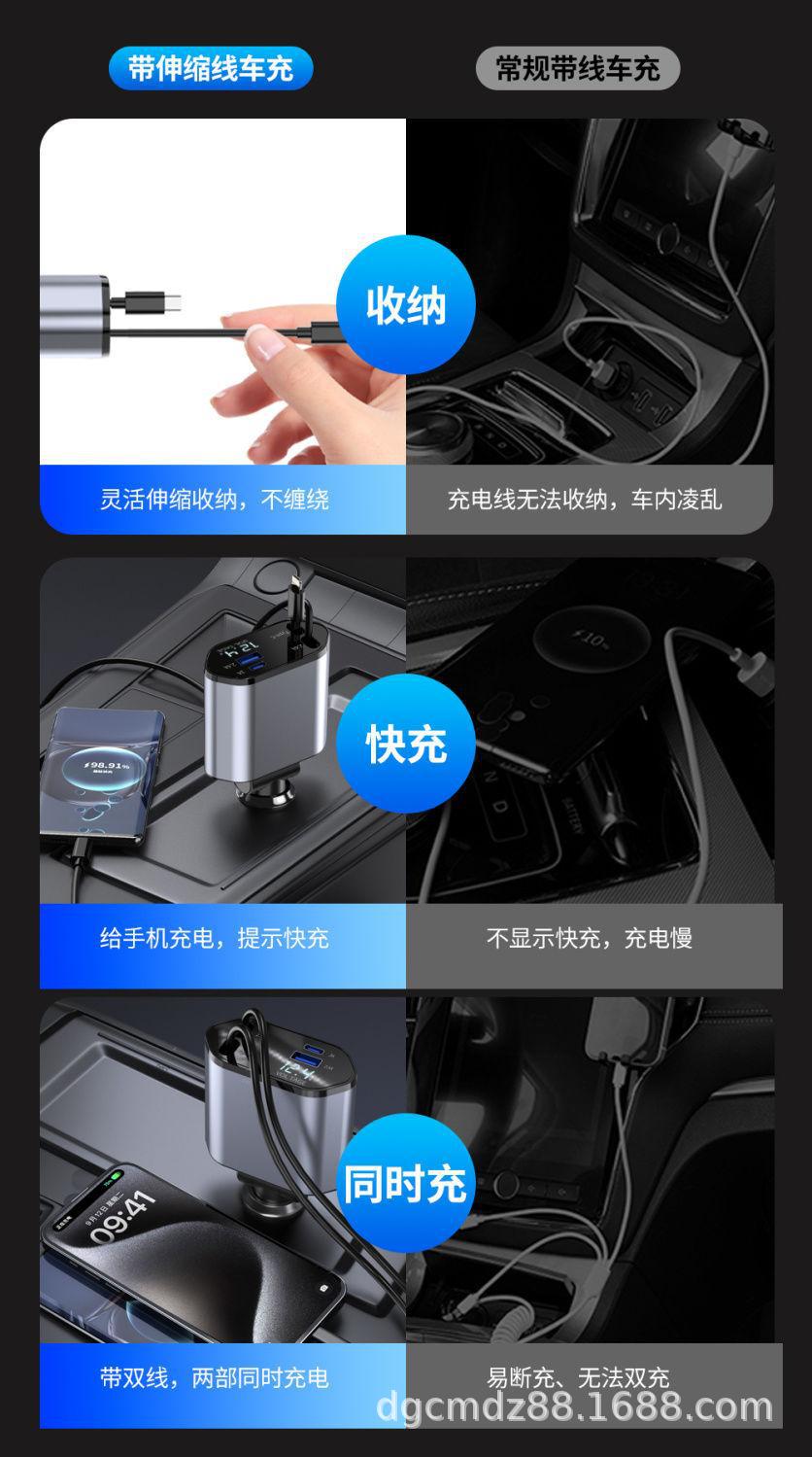 Cargador de Coche Soporta Carga Rápida de 120W, Encendedor de Cigarrillos Multifuncional con Pantalla Digital, Cargador Rápido Transfronterizo 3 en 1 120W