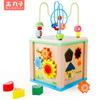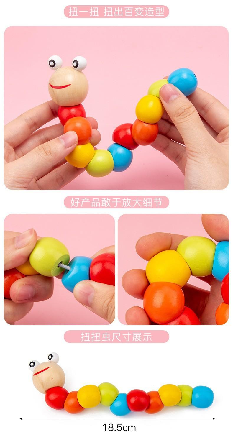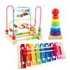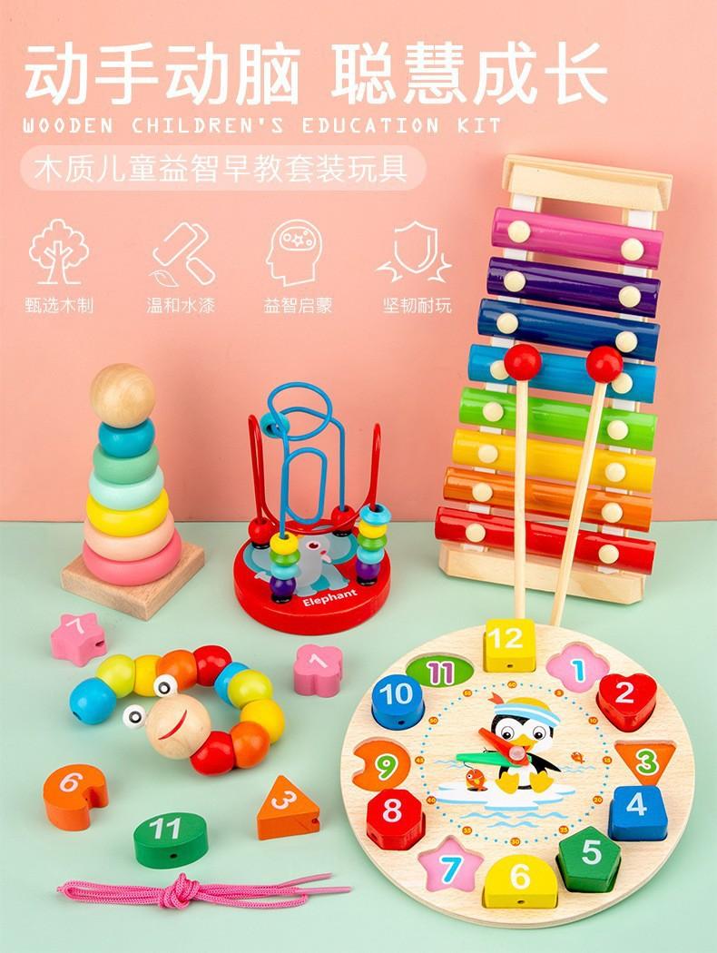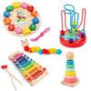 Juguetes educativos de madera transfronterizos para niños, educación temprana, pequeño reloj despertador, piano, pequeñas cuentas redondas, torre de arcoíris, gusano giratorio, juego de cinco piezas