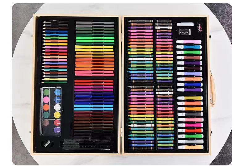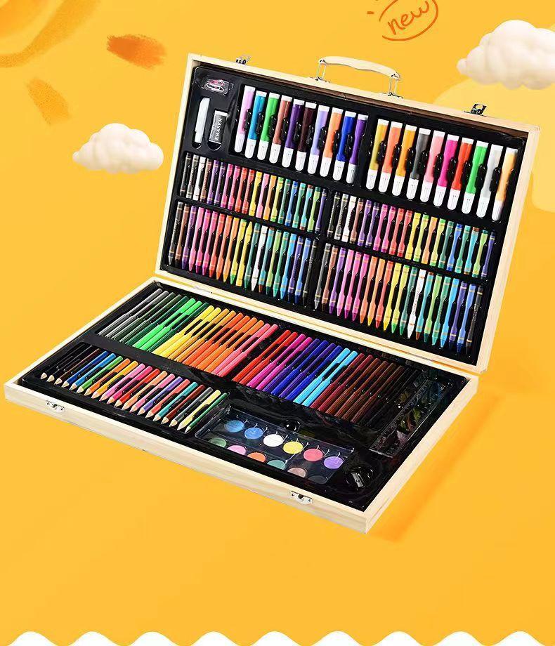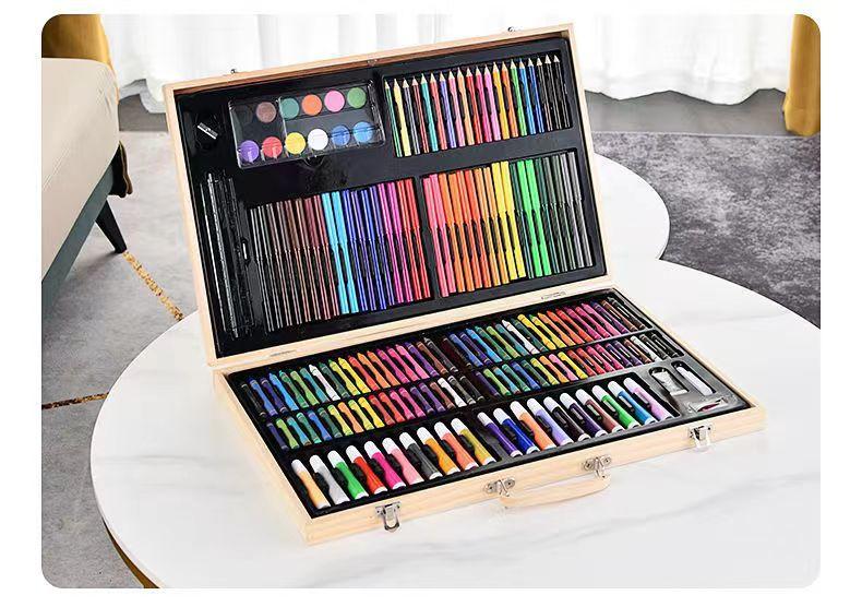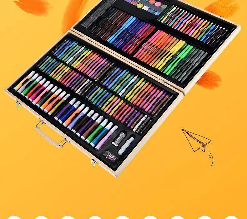Caja de madera de 180 lápices de acuarela para pintar, ideal para regalo, ideal para niños, lavables, con mina de color, para pintar al óleo.