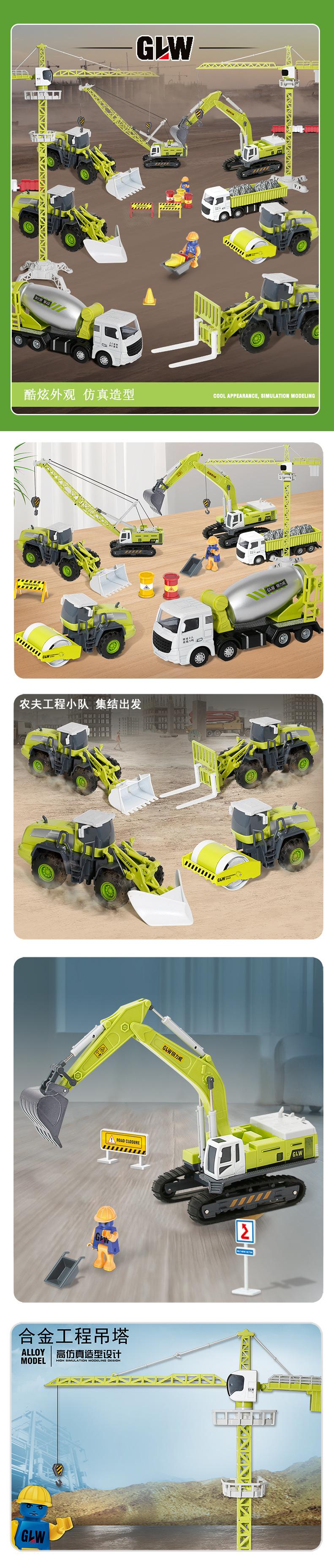 Vehículo de ingeniería de aleación única traje de coche de juguete inercial para niños excavadora grúa niño excavadora 1-3-6 años transporte