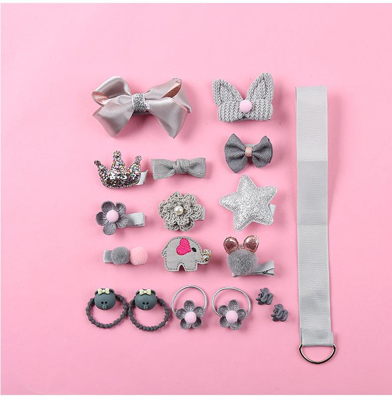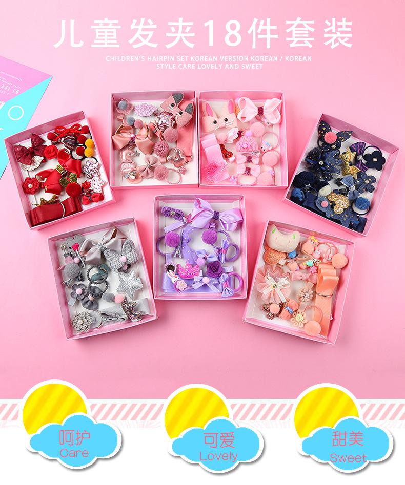 Set de 18 Piezas de Pinzas para el Cabello para Niñas Pinza para el Cabello de Princesa Lazo Pinza Lateral para Bebé Tocado Caja de Regalo Joyería Mayoreo